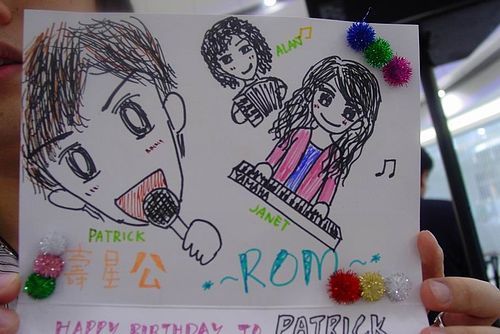 當然, 全晚最最感動是見到來捧場的 fans/ 朋友仔們~ During show 奏出生日歌預祝Patrick 的生日, 有朋友準備了親手做的生日咭/ 禮物/ 花花, 我相信壽星仔 (還未到 -_-) 一定好感動啦! “喂喂大個仔比心機唱多d 好歌啦!"