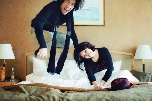 去年婚宴後回到房都沒有力了! 今次有人一見到大床便跳跳跳.. 頑皮啊!