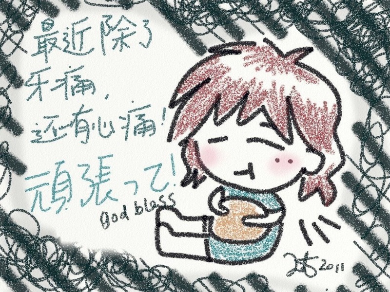 18 三月, 2011 我手畫我心 日本,頑張って! Posted by Janet* 大地震發生了一星期。 每天都是負面的新聞,餘震,海嘯,傷亡人數,核爆危機,輻射等等。 心好痛。還遇上牙痛。 但比起他們失去親人好友,甚至國家的切膚之痛,根本就是相距太遠! 畫畫。 日本加油!頑張るよ!(((o(*゚▽゚*)o))) 分享此文:共享 按一下以分享至 Facebook(在新視窗中開啟) Facebook 按一下即可分享至 X(在新視窗中開啟) X 分享到 Pinterest(在新視窗中開啟) Pinterest 喜歡 正在載入... 相關