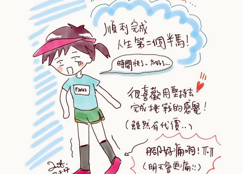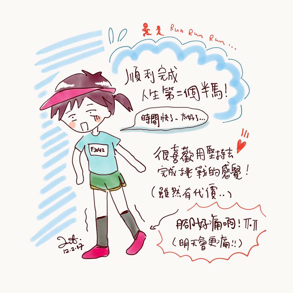 13 二月, 2017 我手畫我心 完成第二次半馬! Posted by Janet* #2017每日一畫 039 現在的我走路好像老婆婆一樣… 但是很開心!第二個半馬挑戰成功 !感謝天公造美! 分享此文:共享 按一下以分享至 Facebook(在新視窗中開啟) Facebook 按一下即可分享至 X(在新視窗中開啟) X 分享到 Pinterest(在新視窗中開啟) Pinterest 喜歡 正在載入... 相關