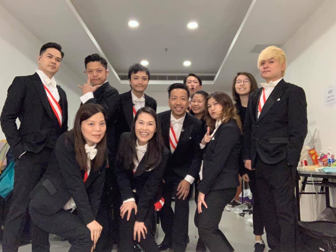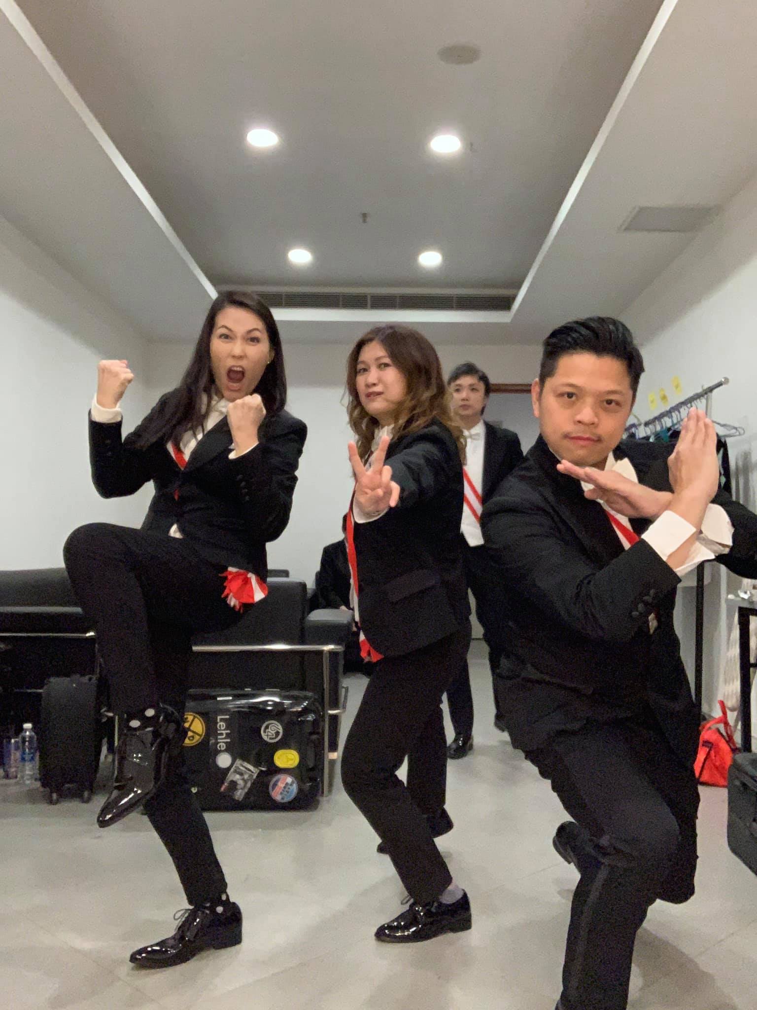 我們這隊克勤大樂隊演出前都很好氣氛。喜歡跟他們一起工作!感謝前輩 Isabella「喳姐」為我演出前弄頭髮!