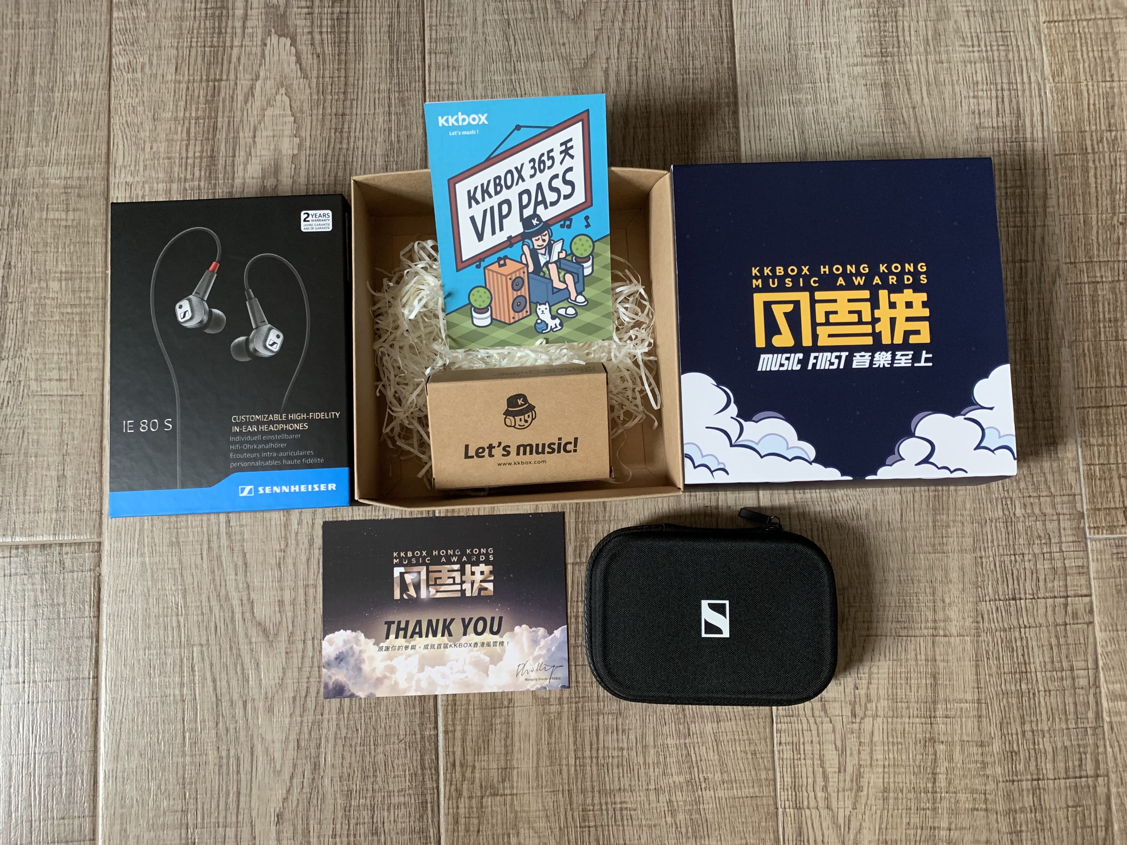 節目太豐富,所以完 show 時已經很晚。臨離開的時候,KKbox 的工作人員(有些應該是台灣人?)捉著我們說辛苦了,還有送上小禮物。好貼心呢!禮物包有 Sennheiser 耳機,KKbox 免費一年 pass 和一個木製的小擴音機。