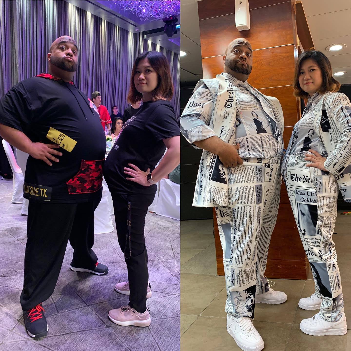 笑笑分享:肚肚大比拼!show 19 和 show 1 的對比!他是 Pretty Crazy 的敲擊樂手(也是DUO Band 的成員)Chris Polanco。我懷孕 5 個半月,他說他的是 24 個月哈哈哈!