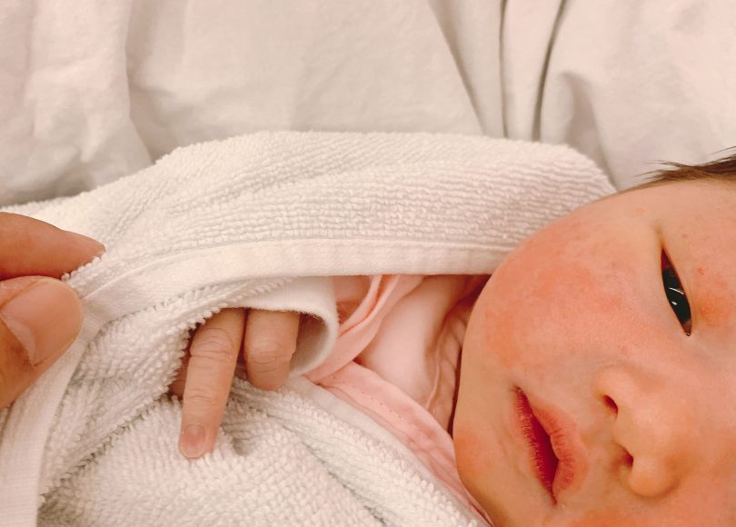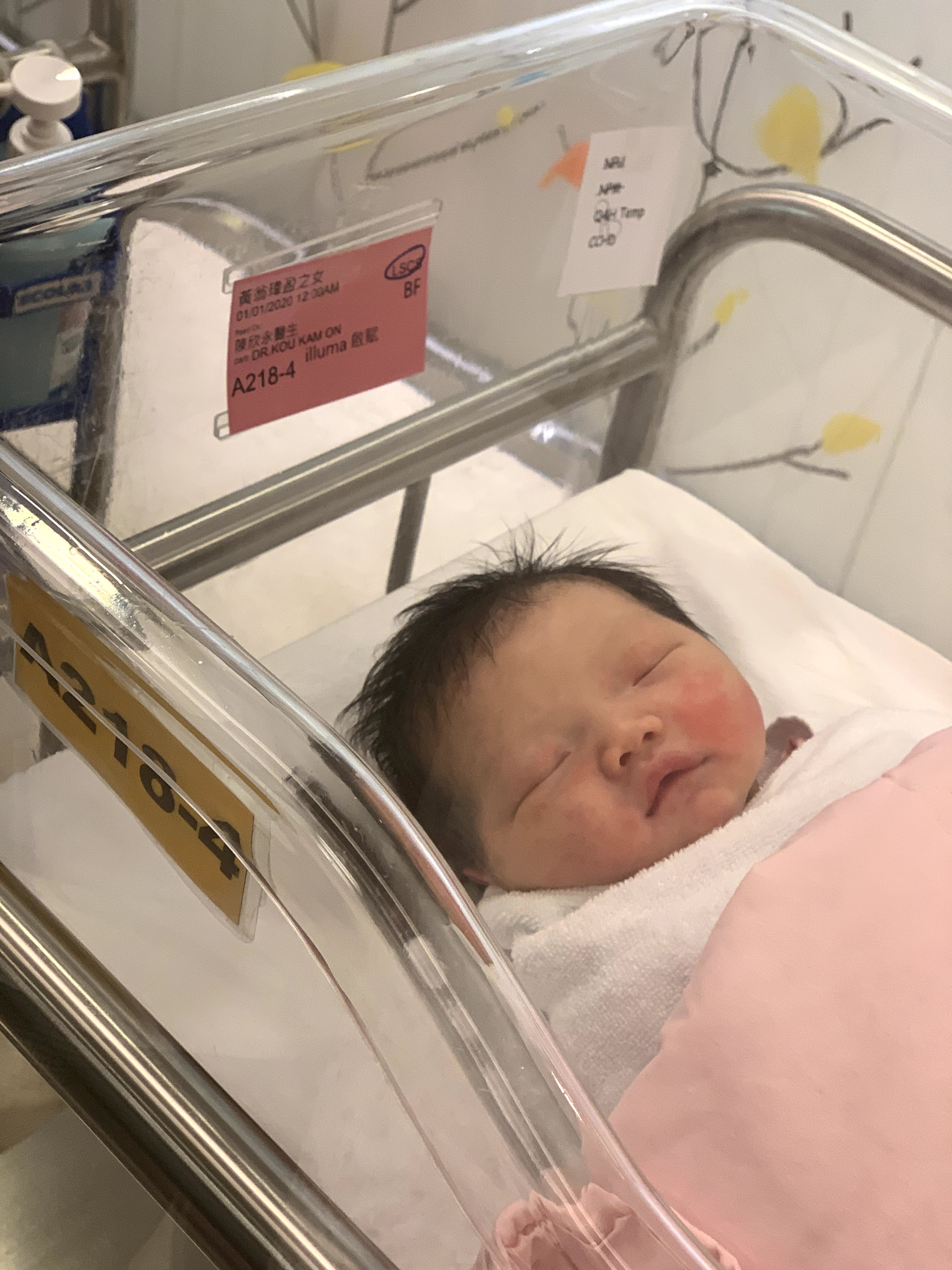 第一次於浸會醫院的親子時間(5:30 – 8pm 期間)見到啦啦。都是由老公來抱(因為我有餵奶時間可抱抱啦啦),她好可愛,但是面紅紅,非常擔心她皮膚敏感… 不知道是不是昨天太多人一起在私家病房?姑娘說其實不是大問題,很多寶寶出生也會面紅紅。