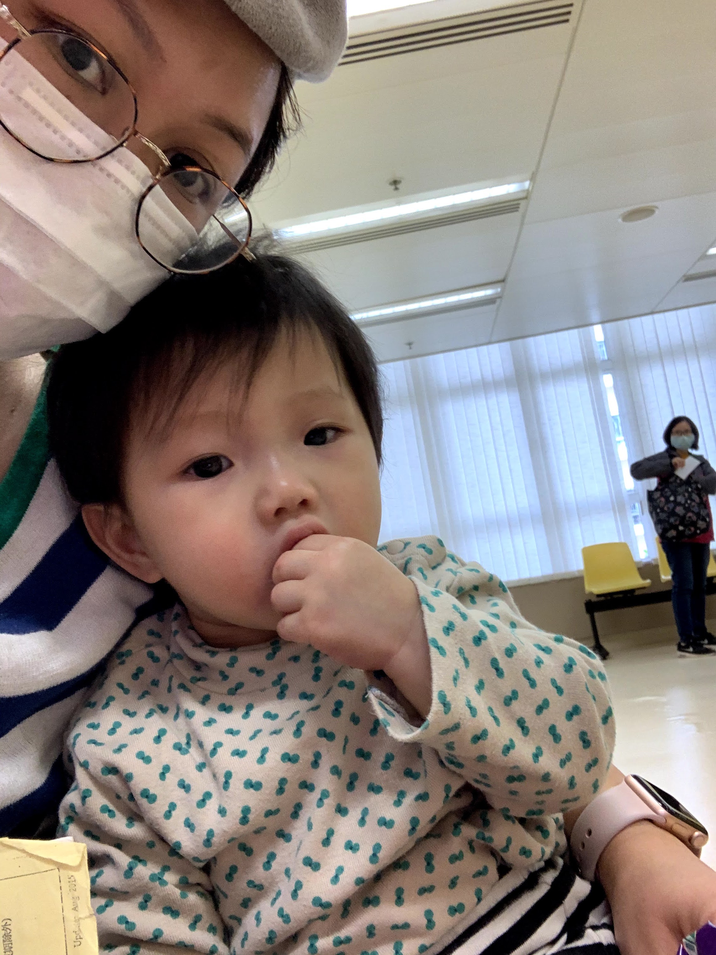 上一次帶啦啦去健康院打針已經是六個月前的事。上次和今次一樣,由於疫症,只能有一位成人陪同。那次真的好「論盡」,因為她不喜歡戴防疫帽,口罩雖讓她試戴,但也不太成功… 還要邊等邊讓她喝奶(因為等得久了),然後她要便便… 更剛剛碰上叫她的籌號,要抱她見醫生…(暈)。上次即使爸爸陪我來,他也只可在外面或樓下等… 所以啦啦媽我就像打仗一樣,提著包包(主要都是baby 的東西),處理啦啦的哭,吃,便,片…。