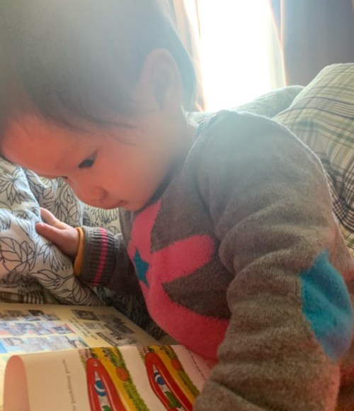 早上,她比平常早一點醒來,看書,玩了半小時左右便喝早餐奶。(上圖)我陪著她吃午餐後才外出工作,見她都很好胃口,心裡放心了。