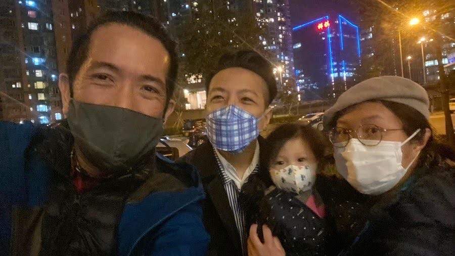 今天晚上好冷呢!幫啦啦穿上厚厚外套後,一起到家樓下收禮物!上一次見何丙哥哥已經是 2020 年1 月1日出生那天了!