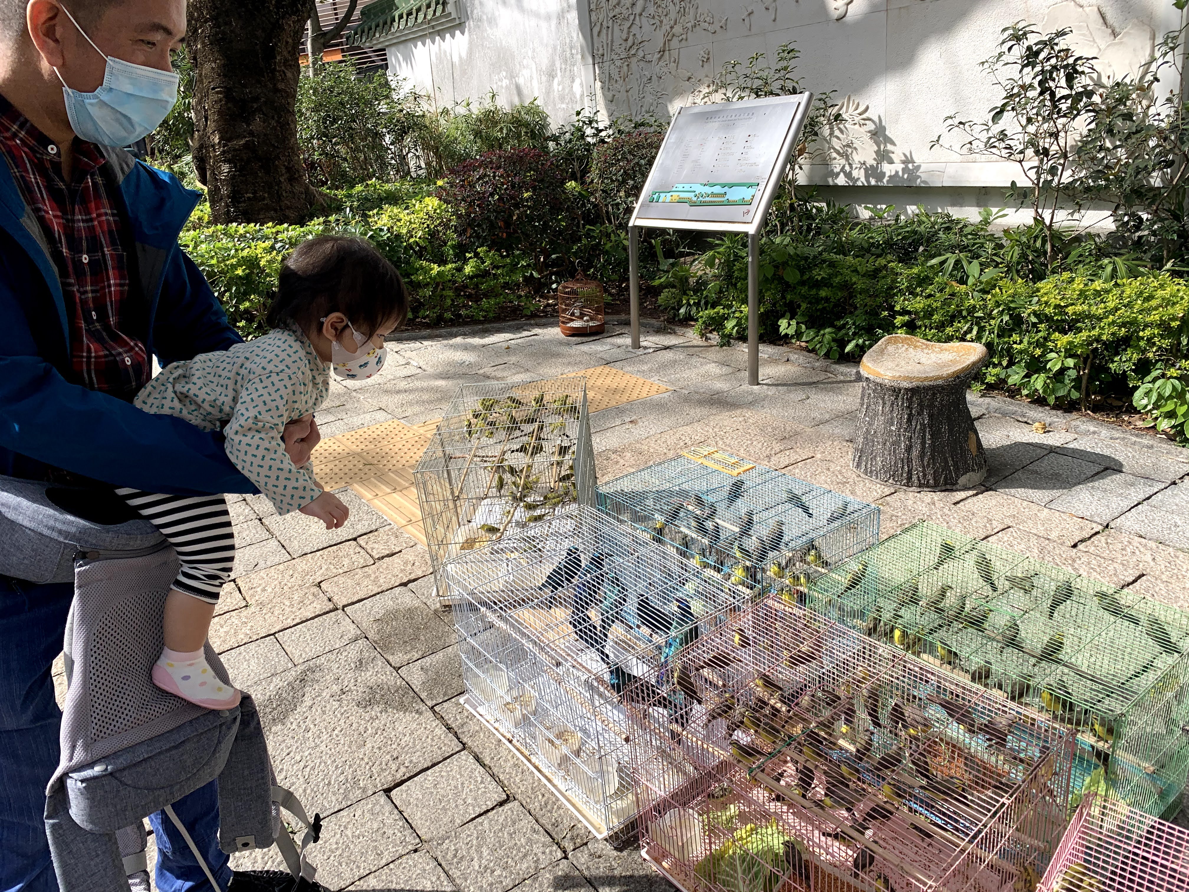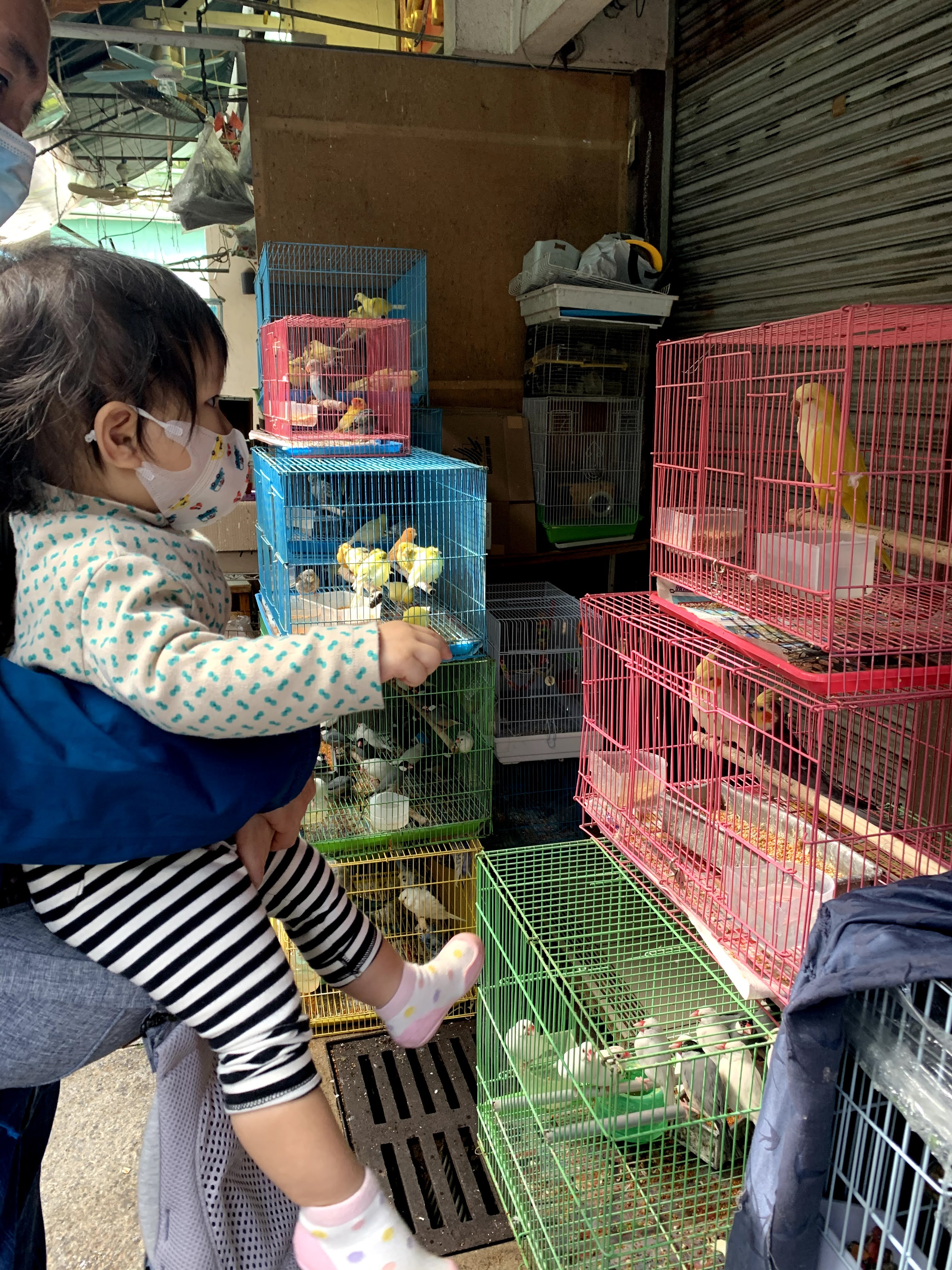和啦啦「逛」完花墟後(嚴格來說她沒有用腳逛過哈哈),我們去了一下雀鳥公園!啊,原來我也是第一次來!她是第一次那麼近距離看鳥兒呢!目不轉睛!去公園也看不到那麼久,因為小鳥很快會飛走哈哈!