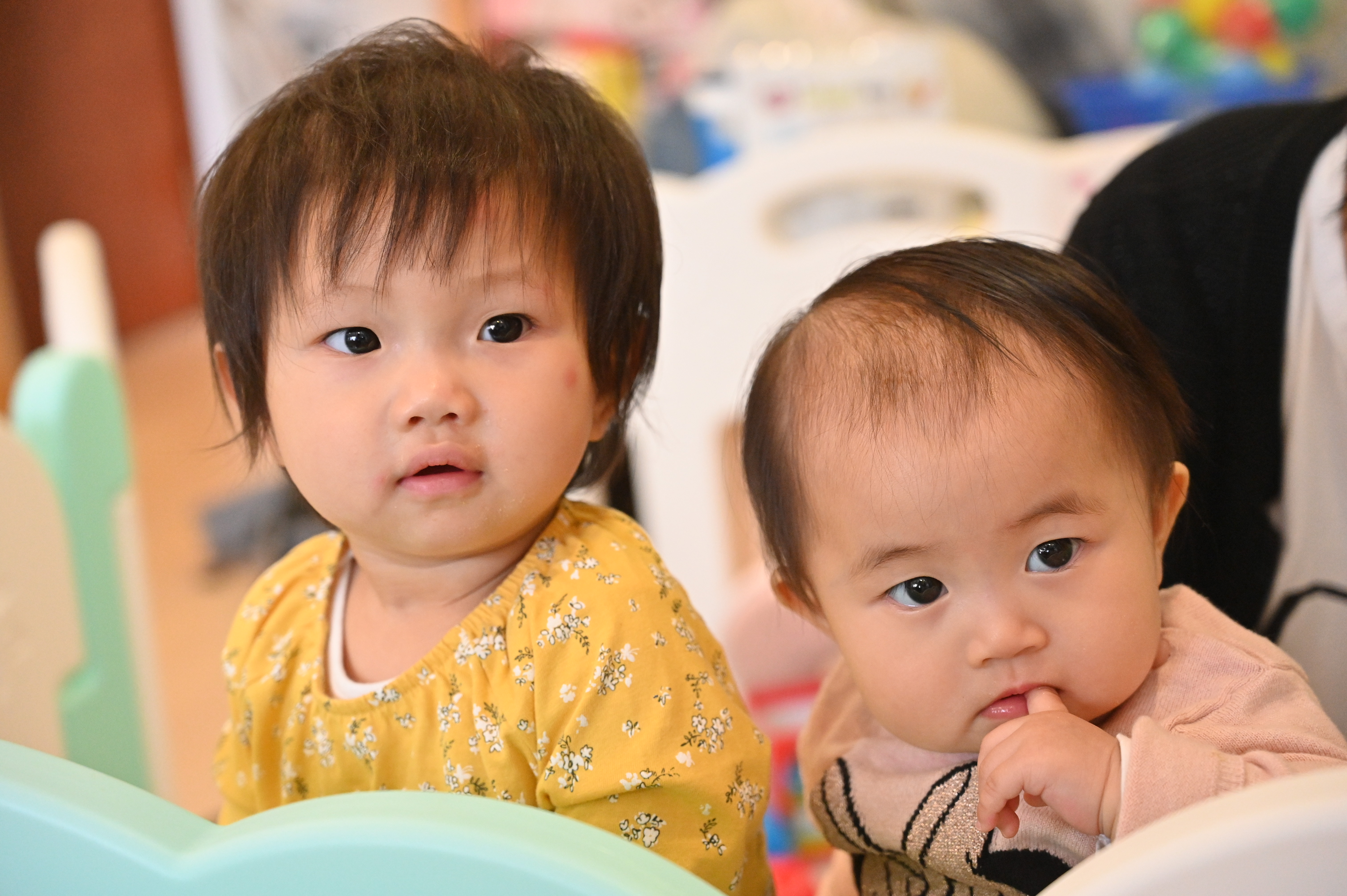 天晴暫時是和啦啦進行過 BB 社交唯一一個比她小的BB,她多數都是跟年紀比她大的小朋友玩。不知道是不是因為肚餓,啦啦經常站著看我們吃飯(露出期待自己也可以吃的樣子),明明就已經吃過… 她真是超愛吃的 Baby!