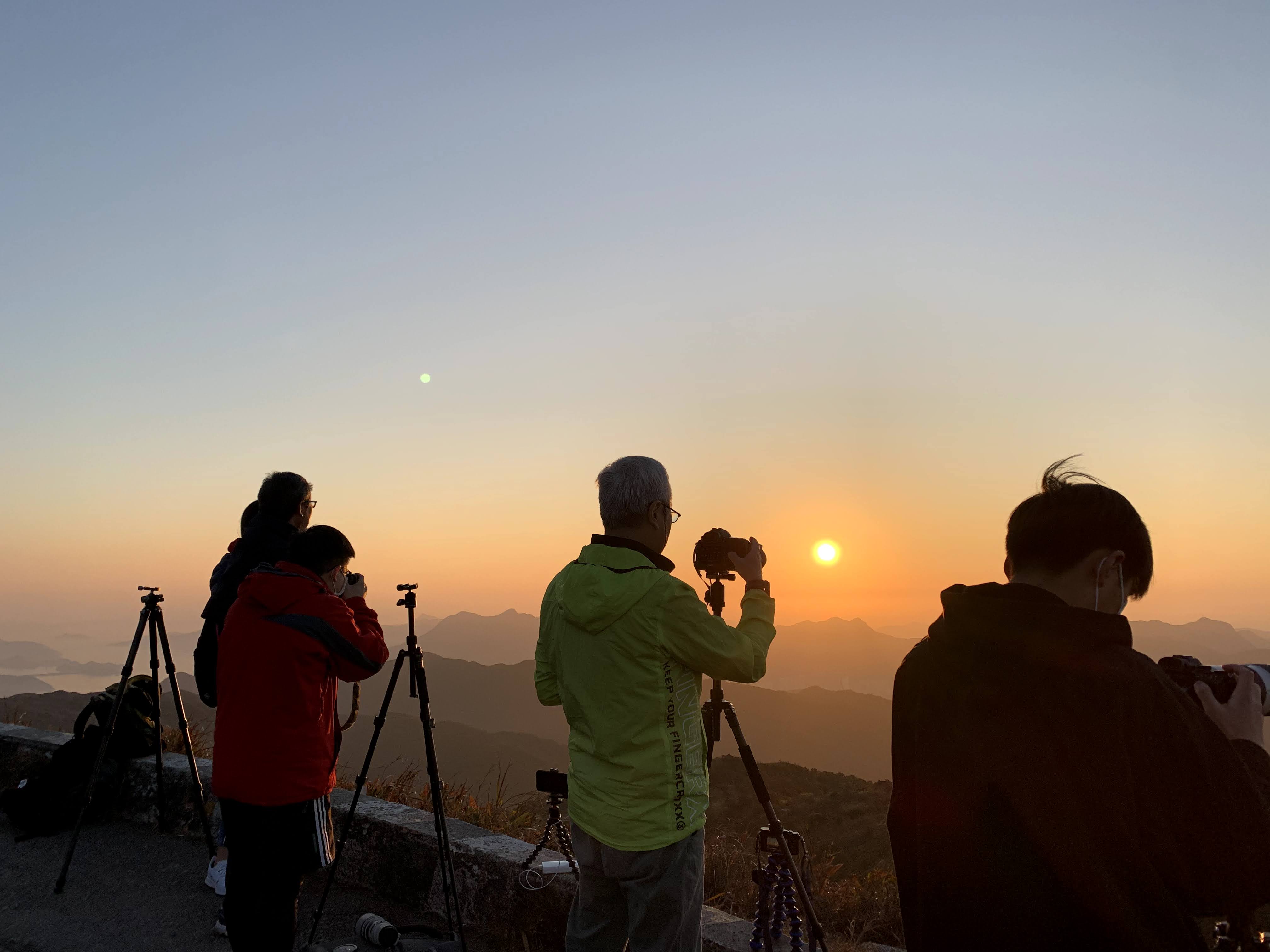今早五時就起床,五時半出門,開車到大帽山看日出。