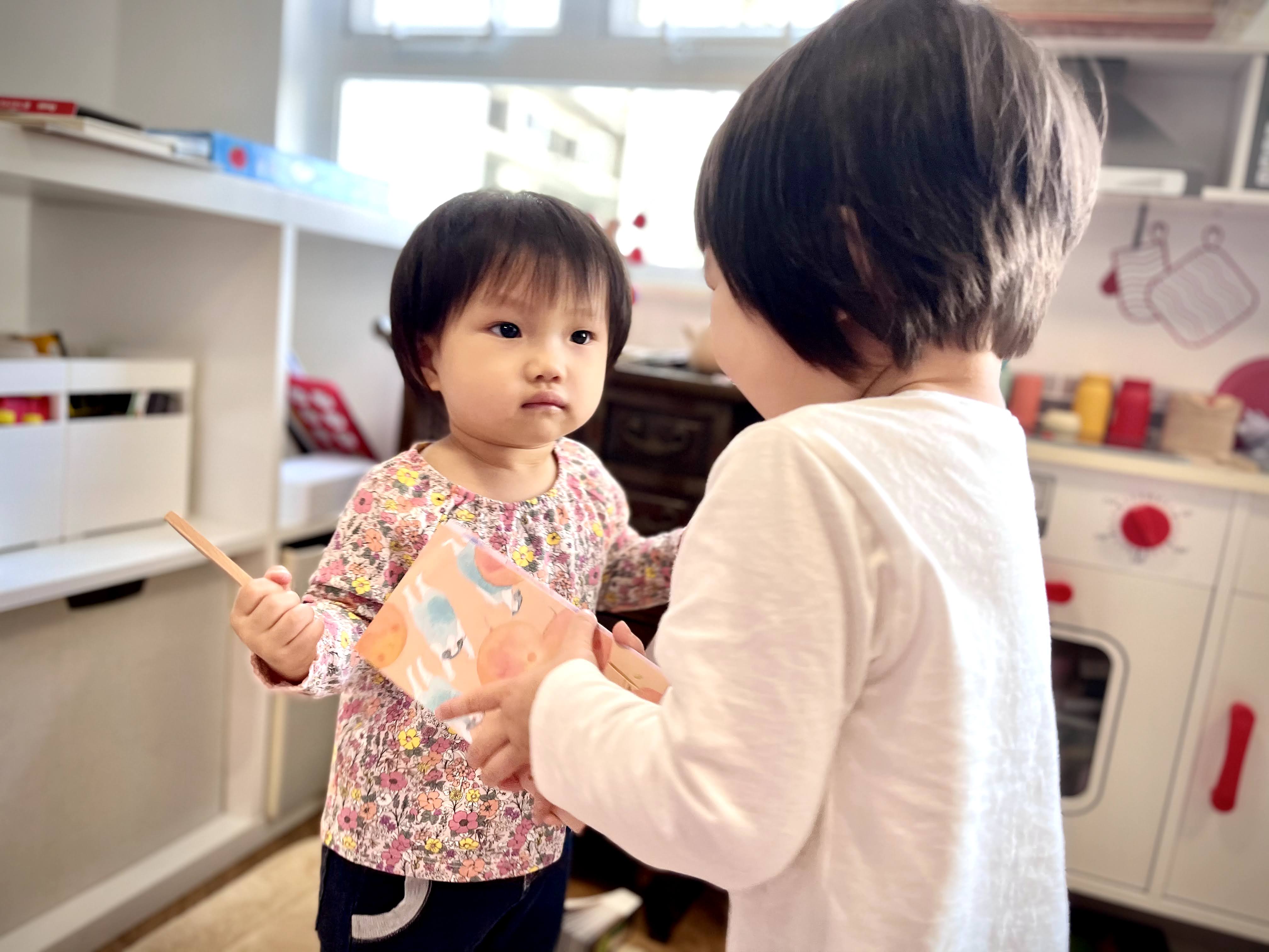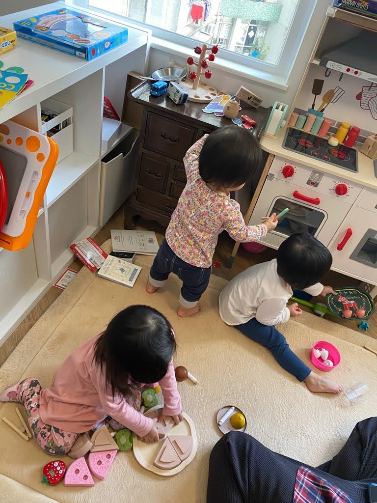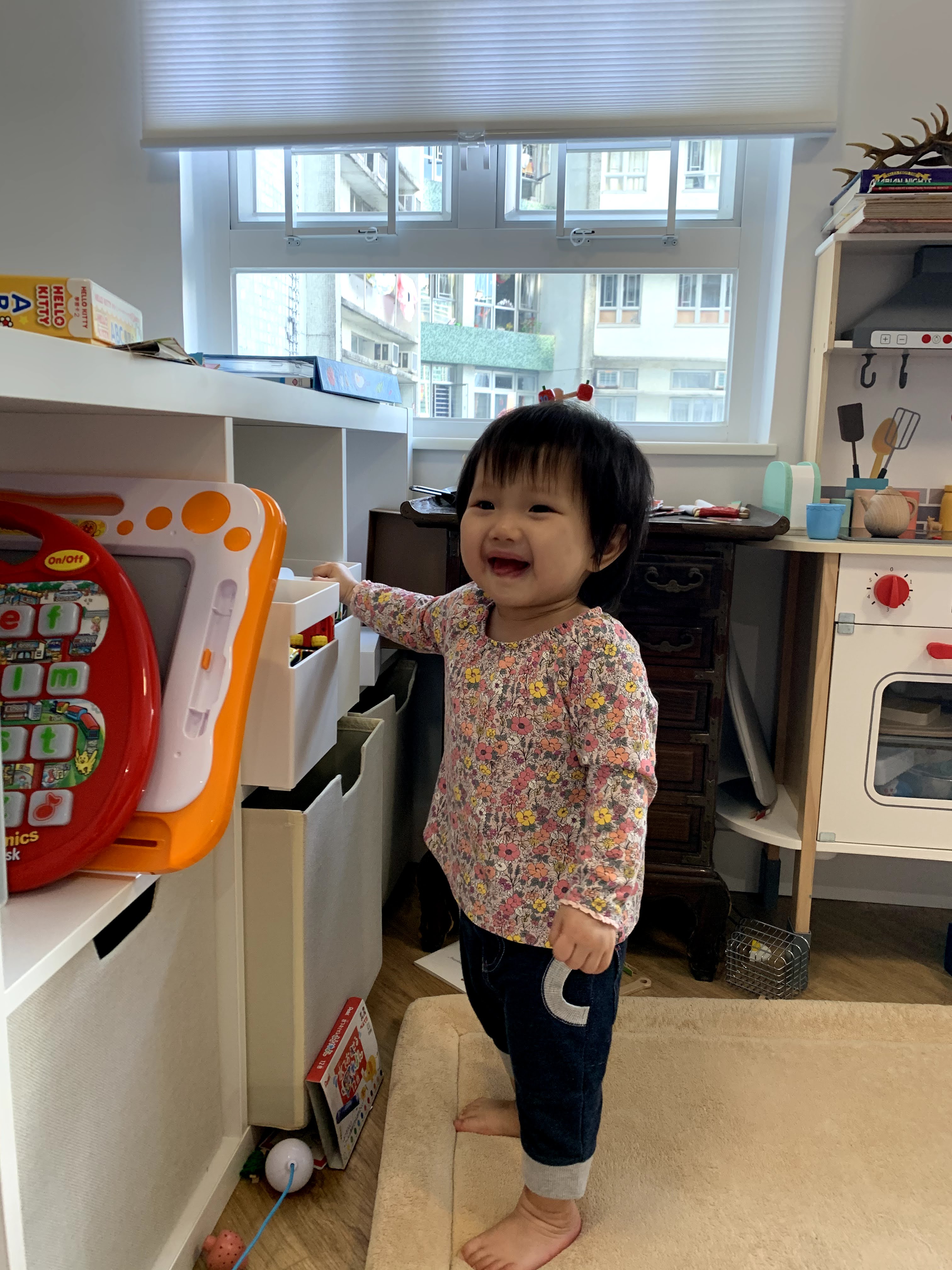 另外,一直也想讓啦啦玩玩具廚房。以前在玩具店讓她看過,但那時還未可以走路,當然也不夠高。今次,可以好好的地了。(其實現在還是有一點點不夠高哈哈)她最喜歡把抽屜打開,取裡面的玩具食物出來,然後再把食物放回去。我妹妹的女兒也加入一起玩,三表姐妹很忙碌,情況就像是參加 playgroup 的 free play 時段。