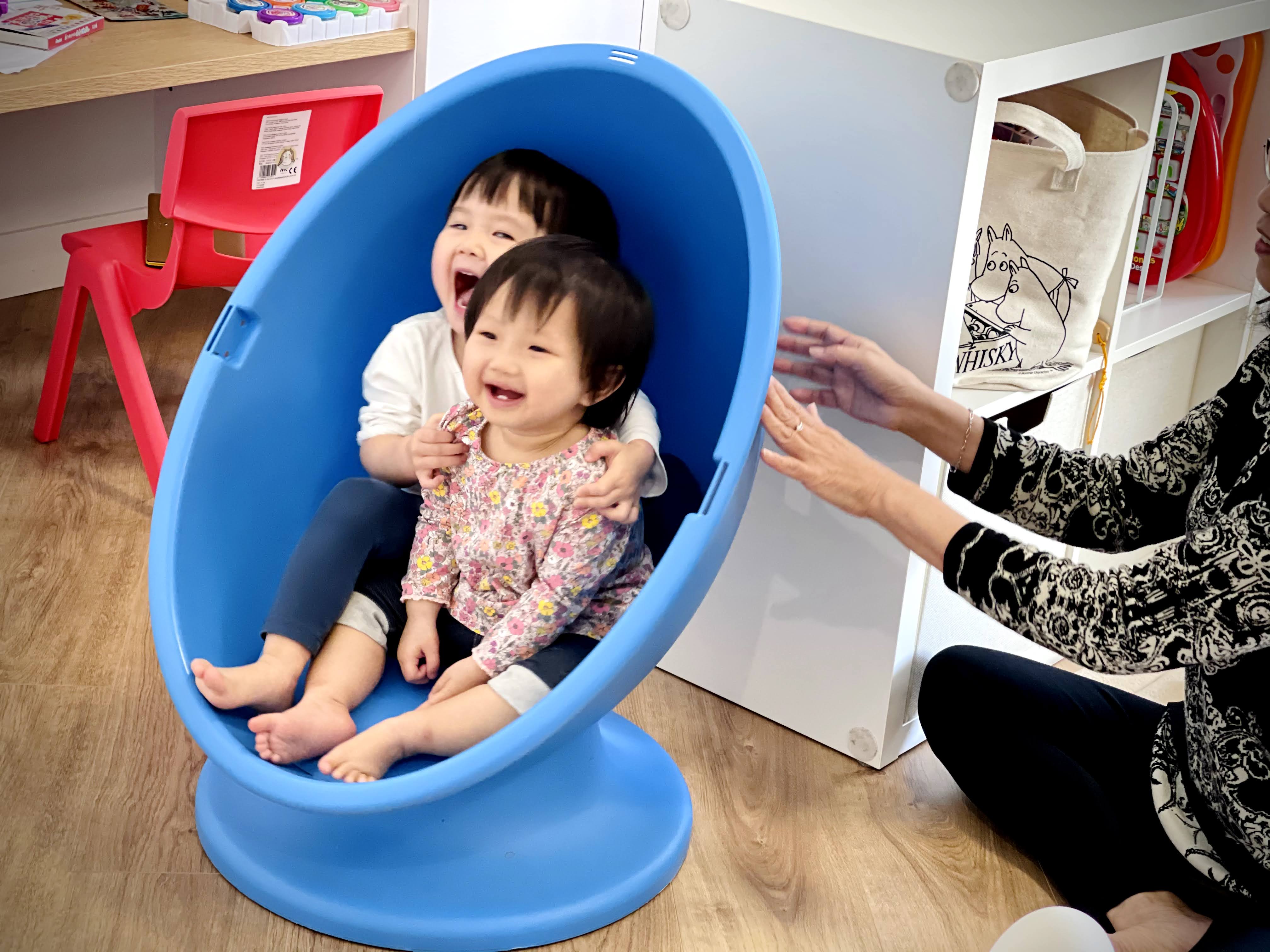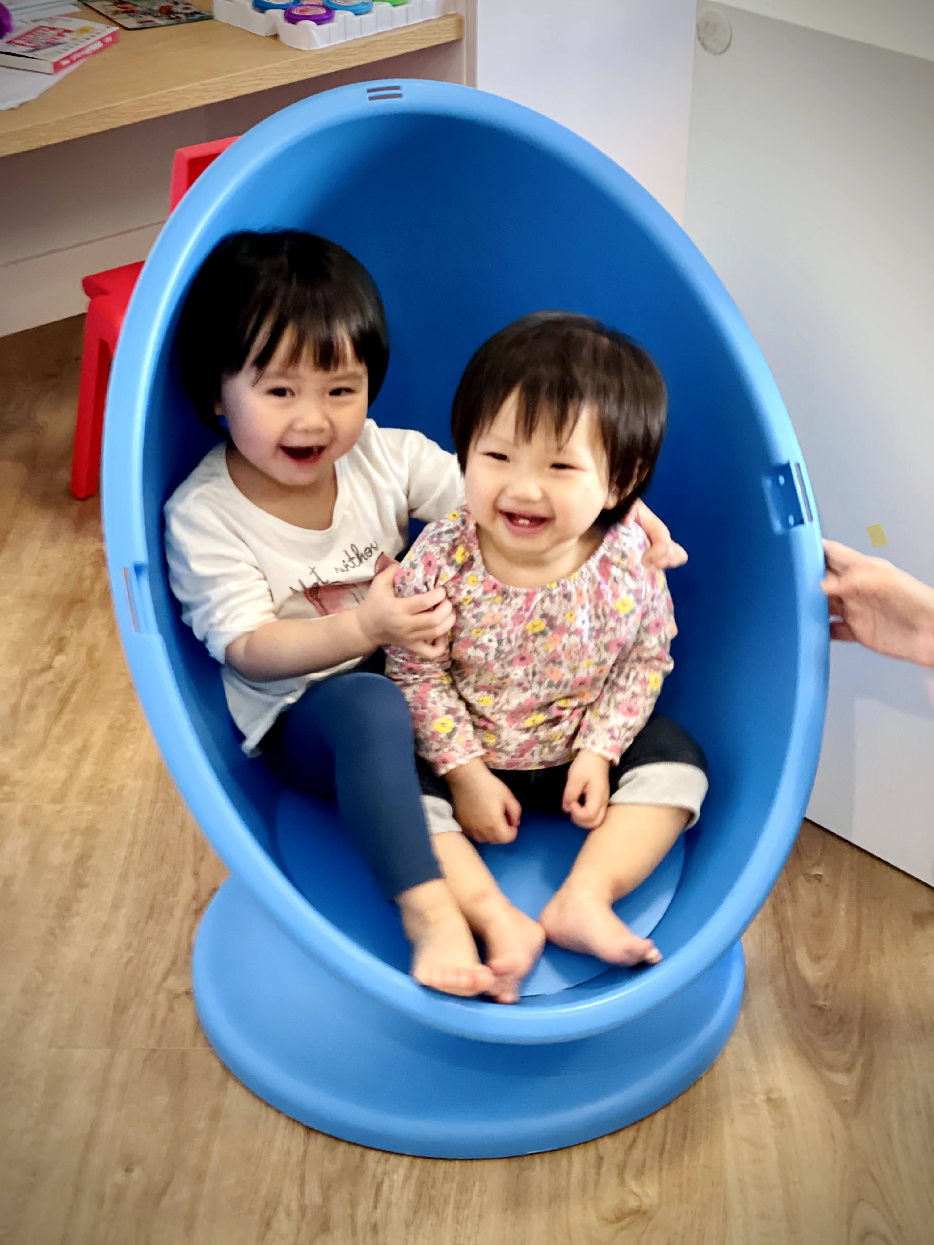 這張藍色的轉轉椅,她超喜歡,不論是坐上去或是在側看著轉動的椅。不過,一定要有大人看著,以免發生危險啊。啦啦會走路後都出盡百分之百的力氣去玩!