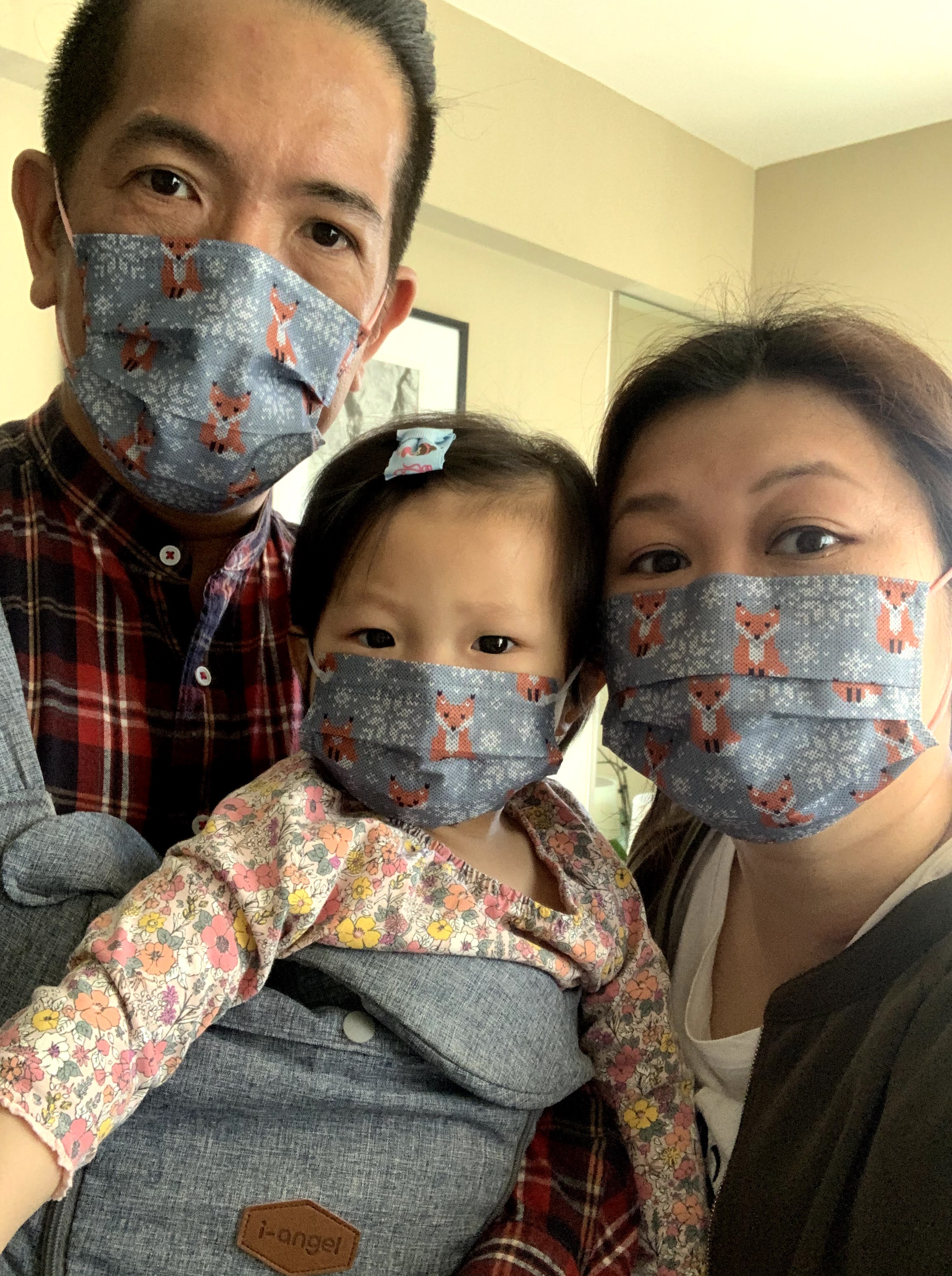 由於早前經歷過驚險的事,幸好一家仍能健康地一起,所以今早選了朋友給的親子口罩。可愛呢。啦啦姨婆是酒樓熟客,為她找了餐廳最沒人的好位置坐。今天有啦啦 BB 光臨哈哈!(啦啦很久沒去過飲茶了!雖然都沒甚麼可讓她吃…)