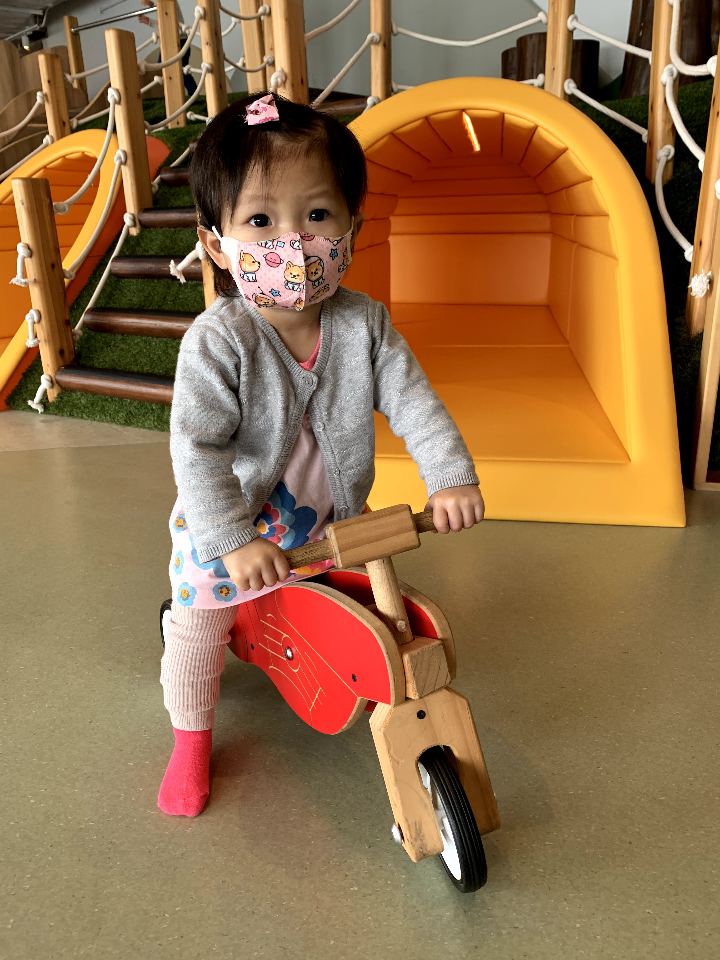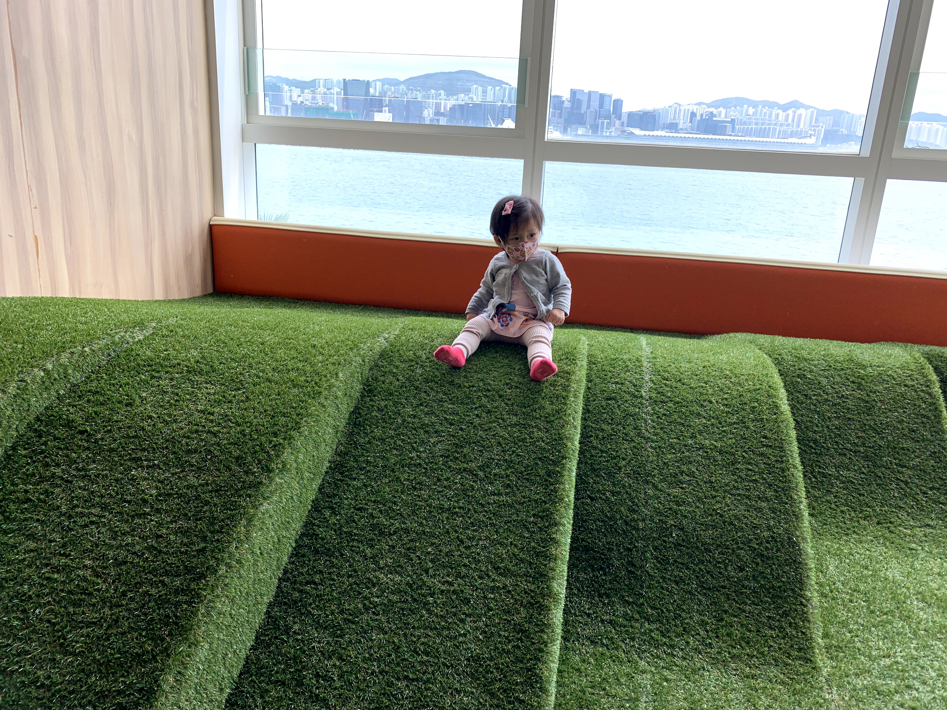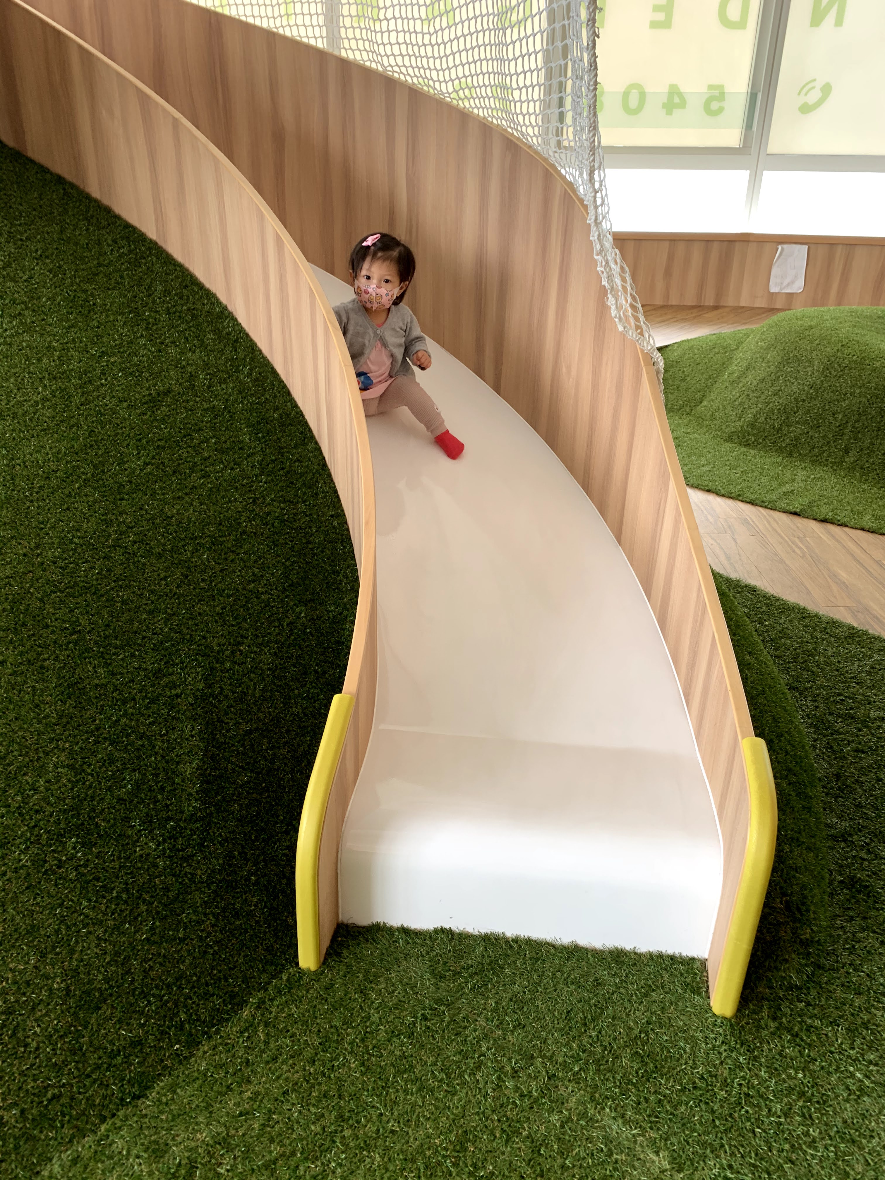 最後一部份的課也是可以去學校的另一個遊樂場玩,看著啦啦爬上一級又一級的樓梯(階梯是軟軟的,爬著不會痛),最後我放手讓她自己滑下來,她好開心啊!