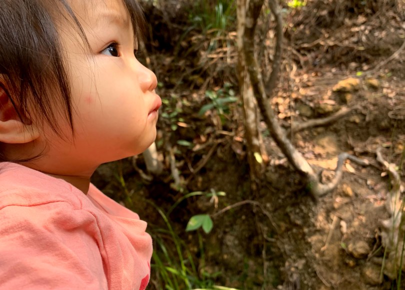 這條路開因為在水溝側,所以路面真的有點狹窄。啦啦還是爸爸揹著比較安全。