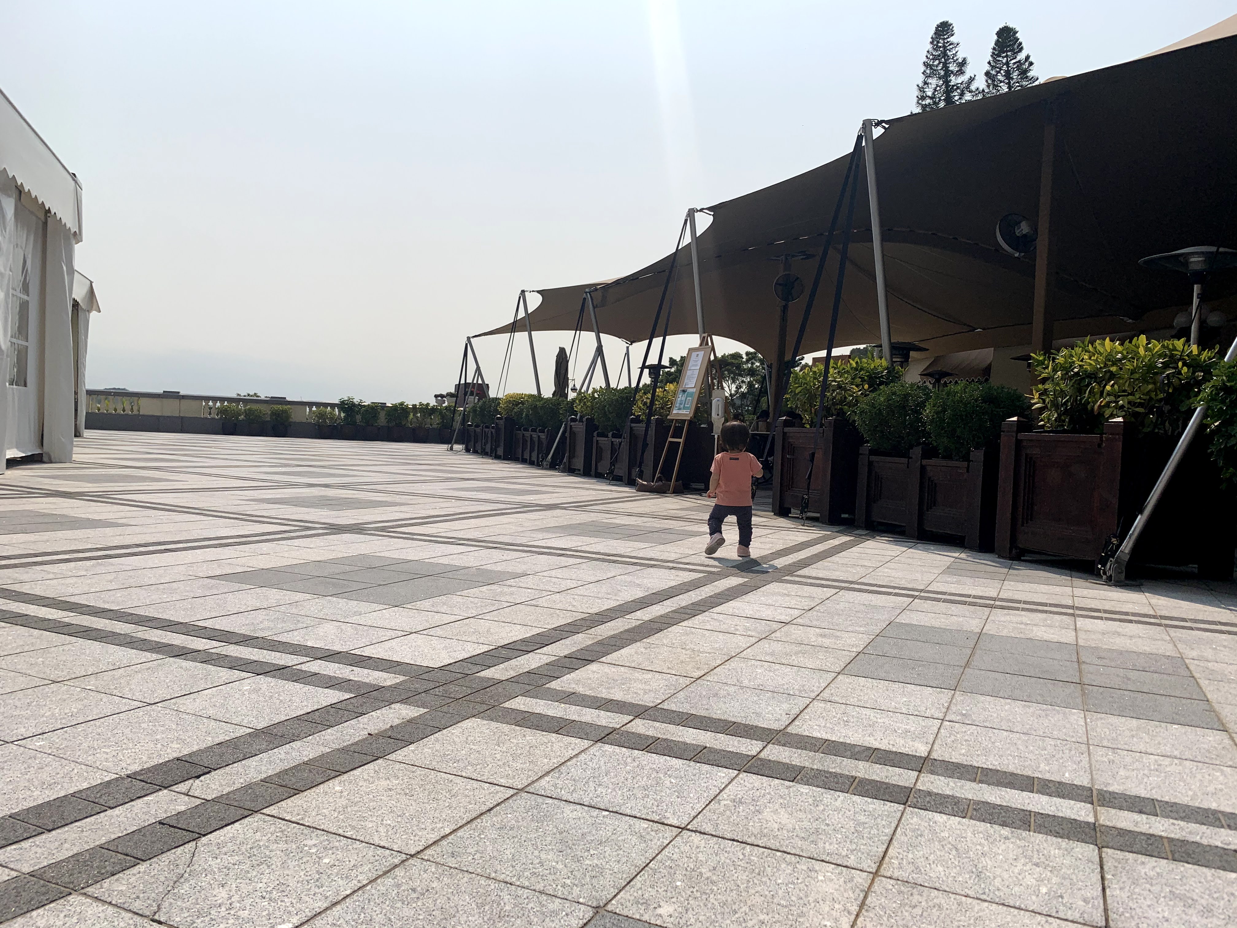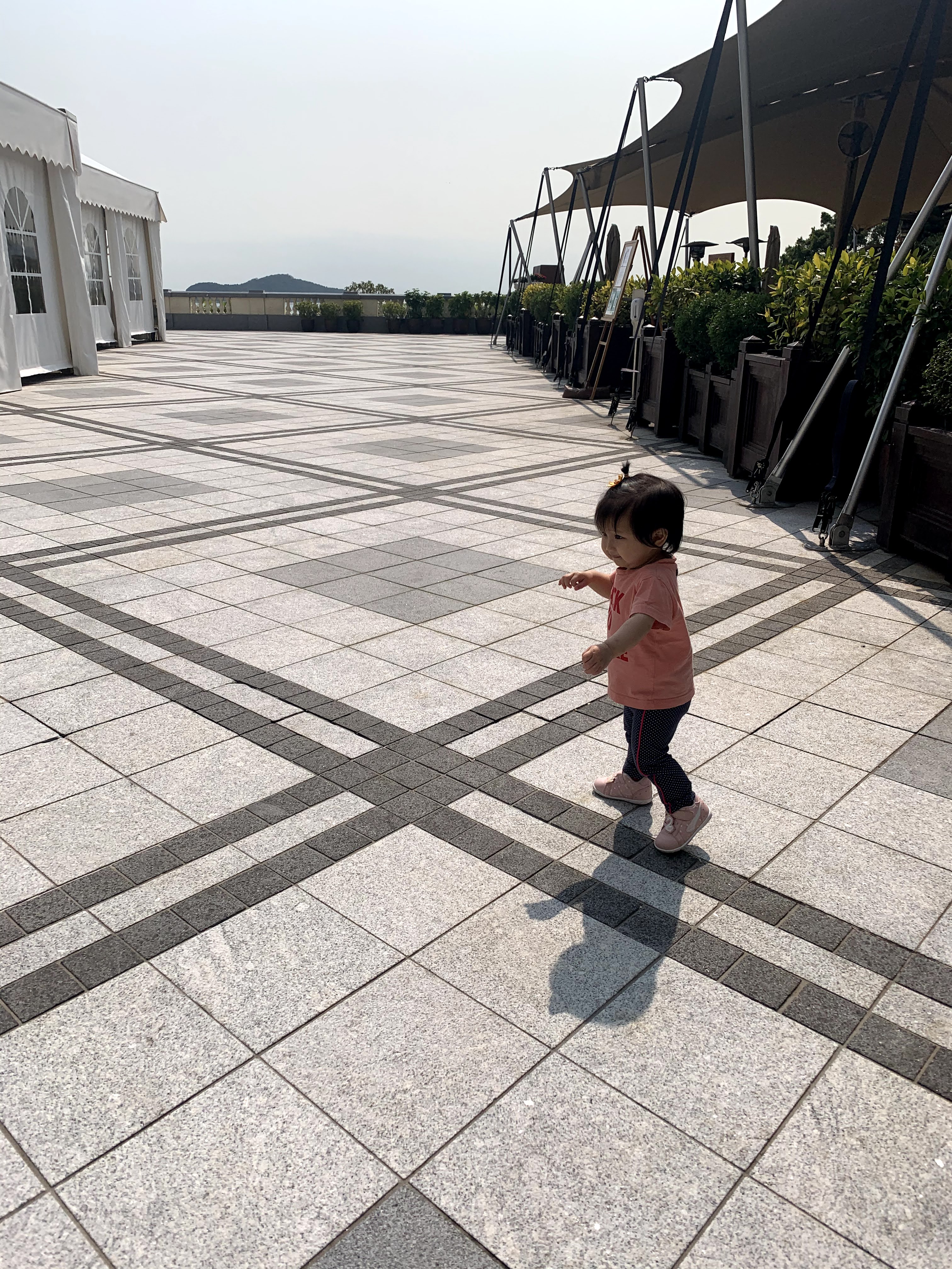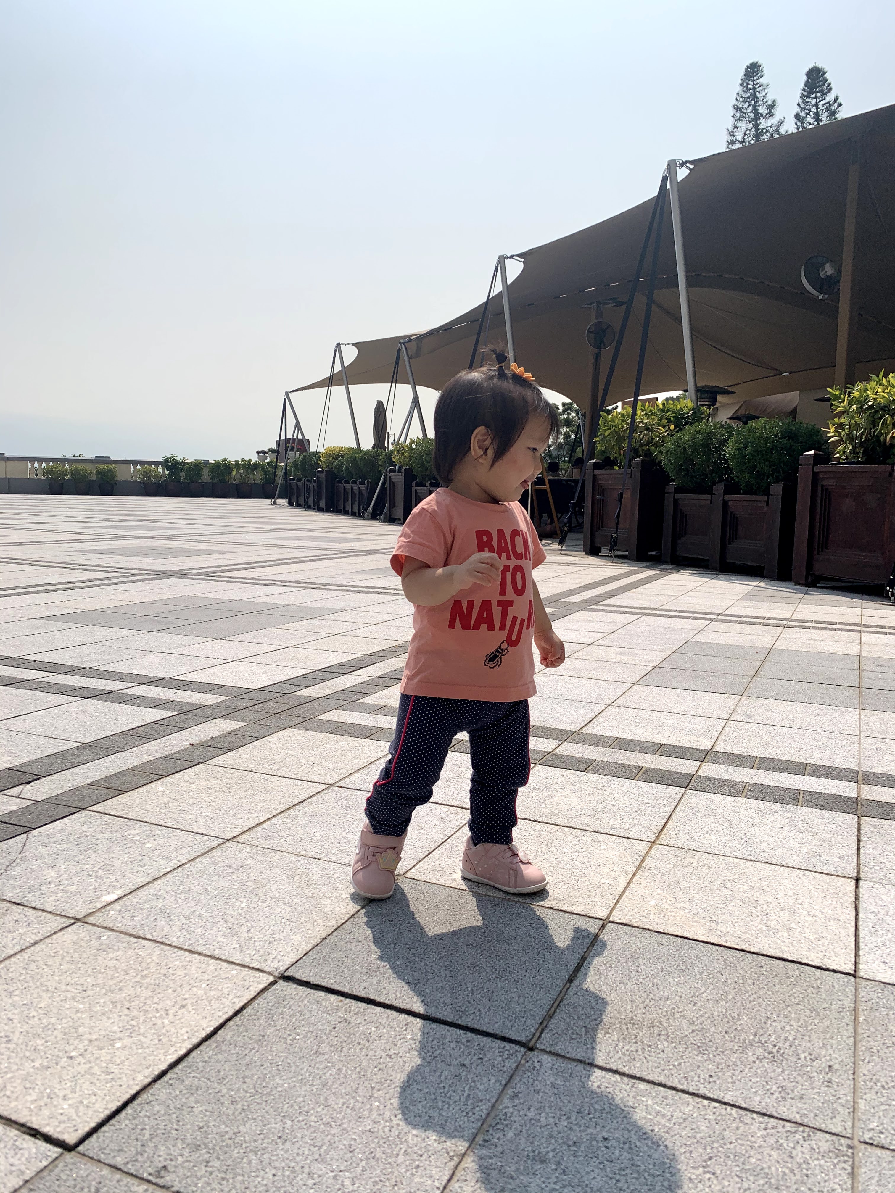 吃完後還到附近走走。最近啦啦跟我一起獨處她都不用我抱,有時候都不要我拖,玩到累才過來抱著我雙腿。但是對著爸爸呢… 經常都要抱!爸爸「屈服」抱她後,她會滿足地偷笑或伸伸脷。