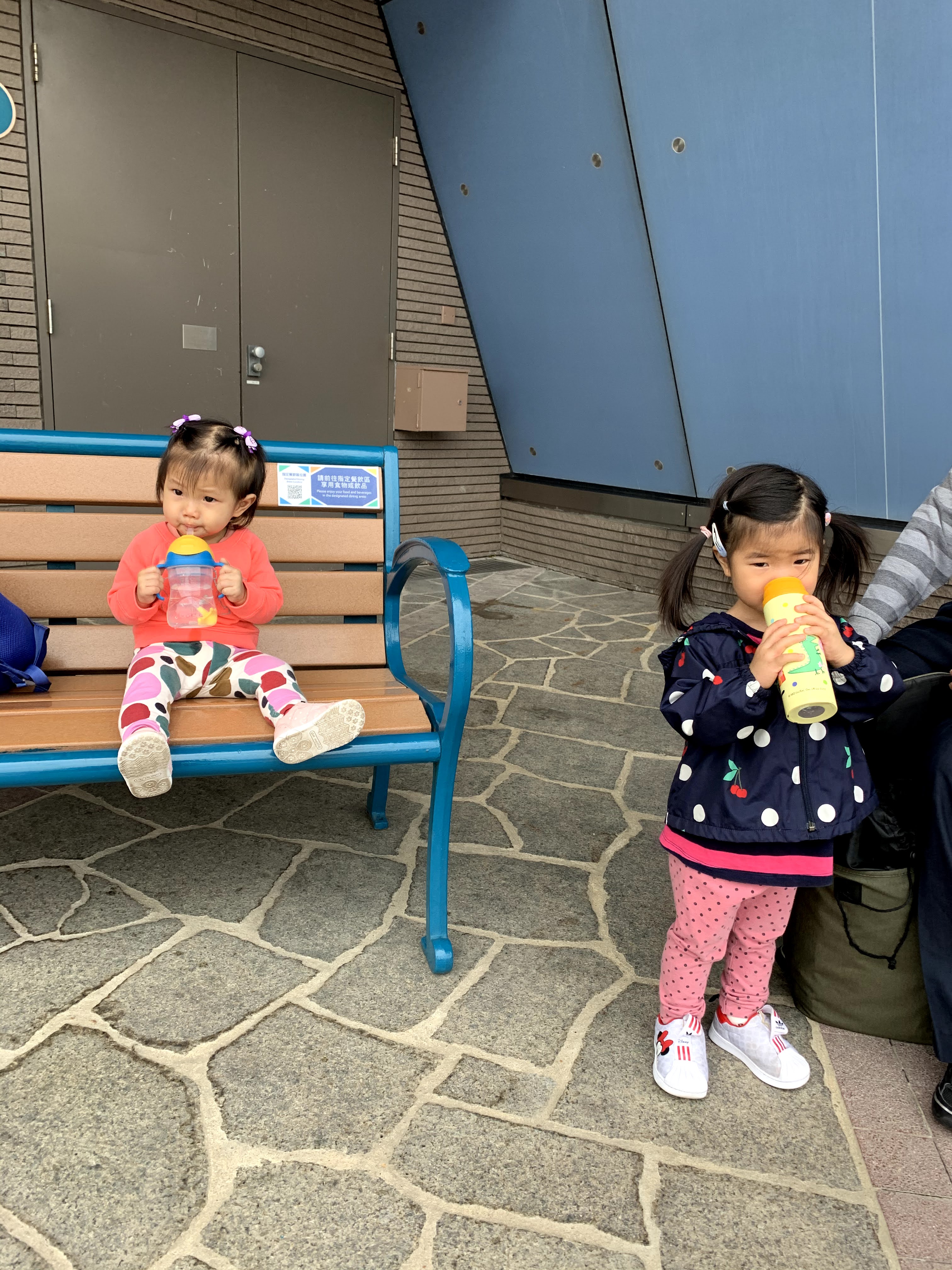早兩天很大風,以為這天也是 windy day,結果還是頗溫暖呢。海洋公園四處也有椅子 babies 都可以坐在一邊休息,喝喝水。
