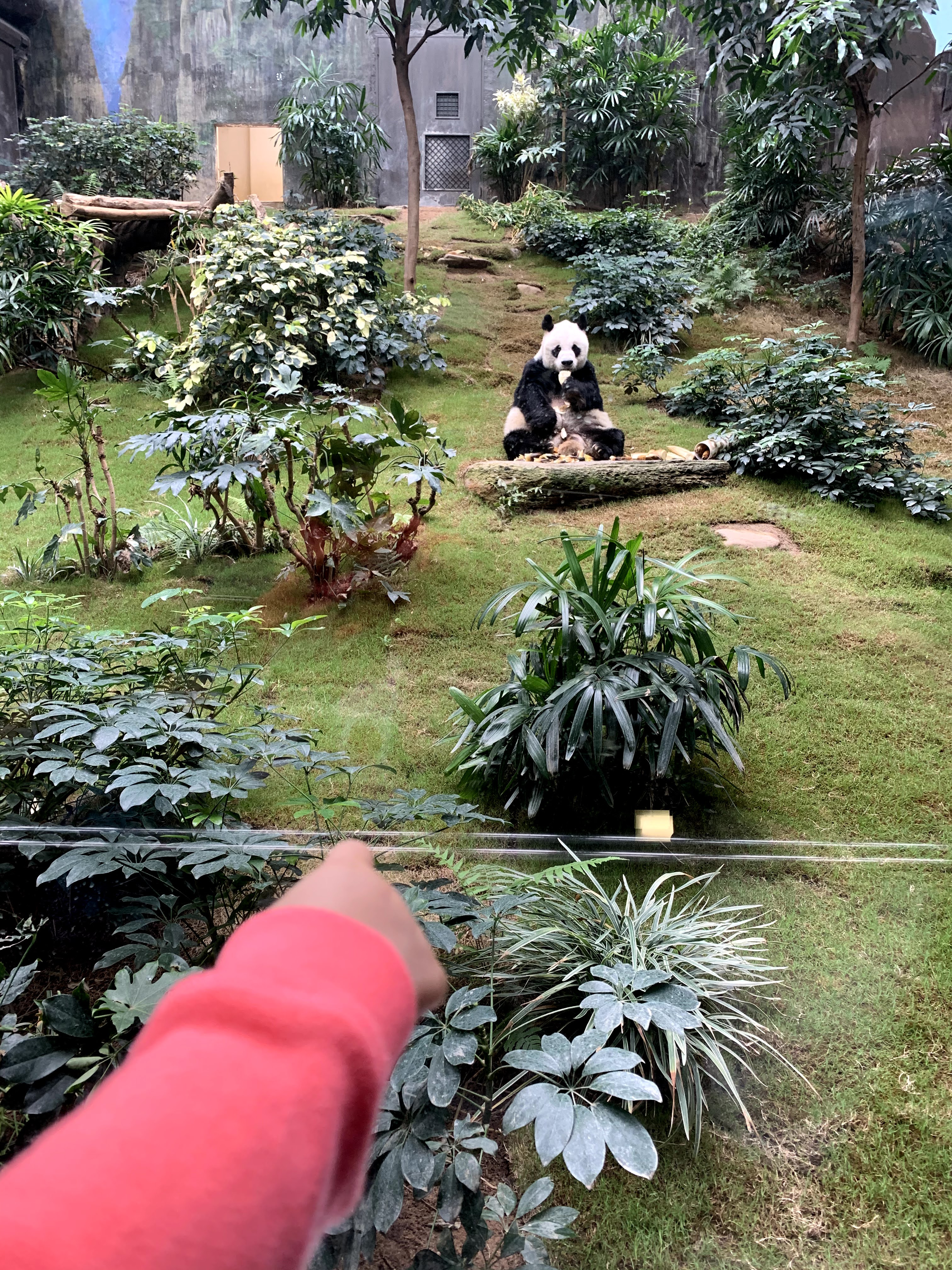 第二站便是去熊貓館。館外一排列席的卡通熊貓很吸晴呢!我記得上一次來都沒有看到會動的熊貓(睡覺和躲在一角),今天很幸運呢,看到牠在吃東西。啦啦看著坐定定的熊貓用手吃東西也會卡卡笑呢!