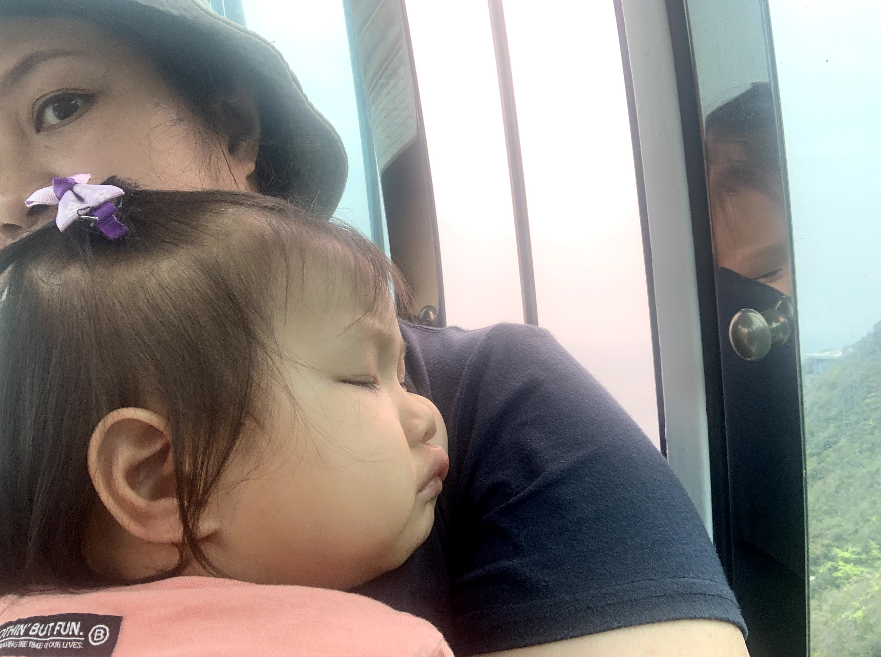 纜車站沒有人排隊!但啦啦睡著了… 完全沒有看過風景。