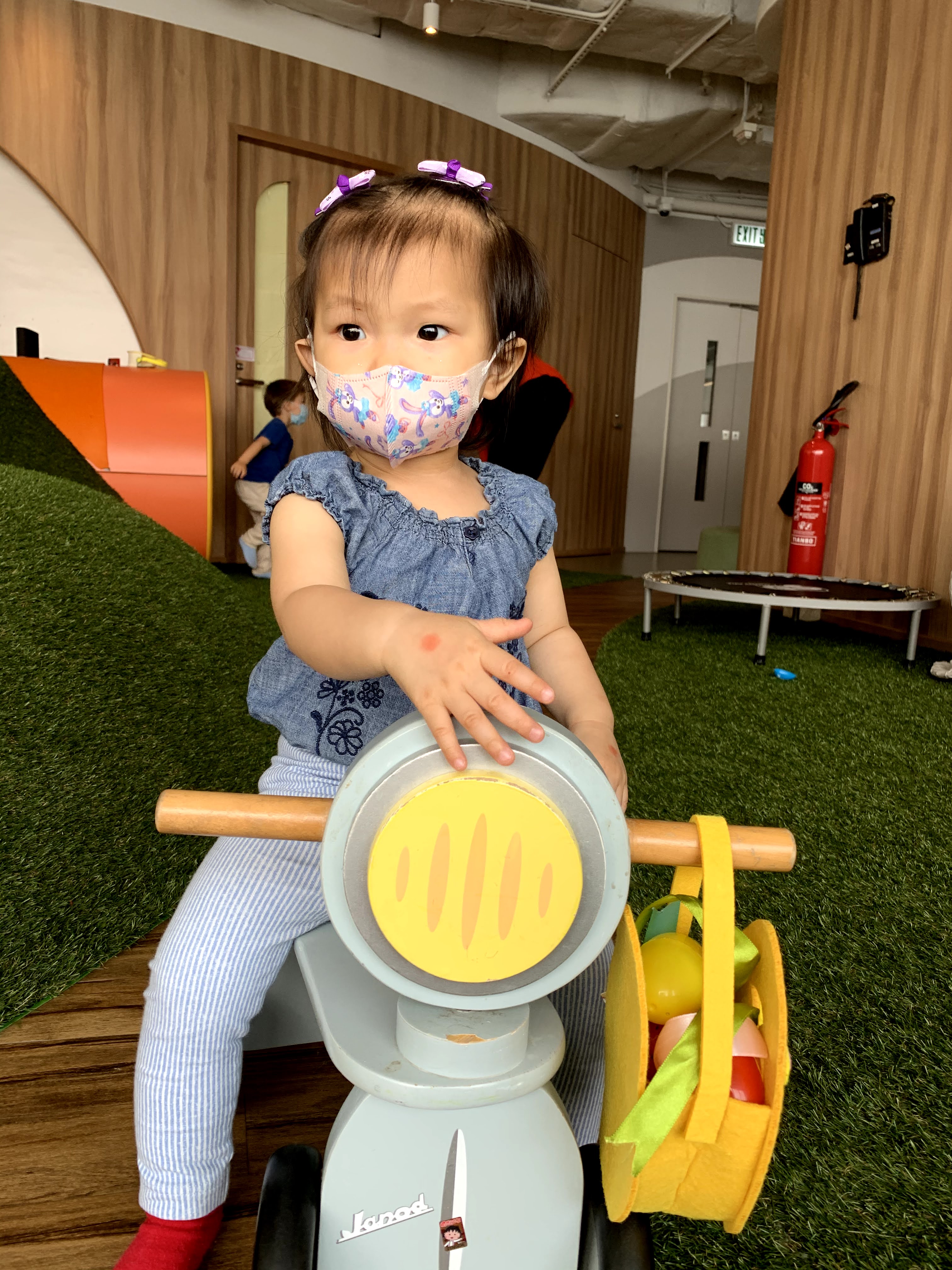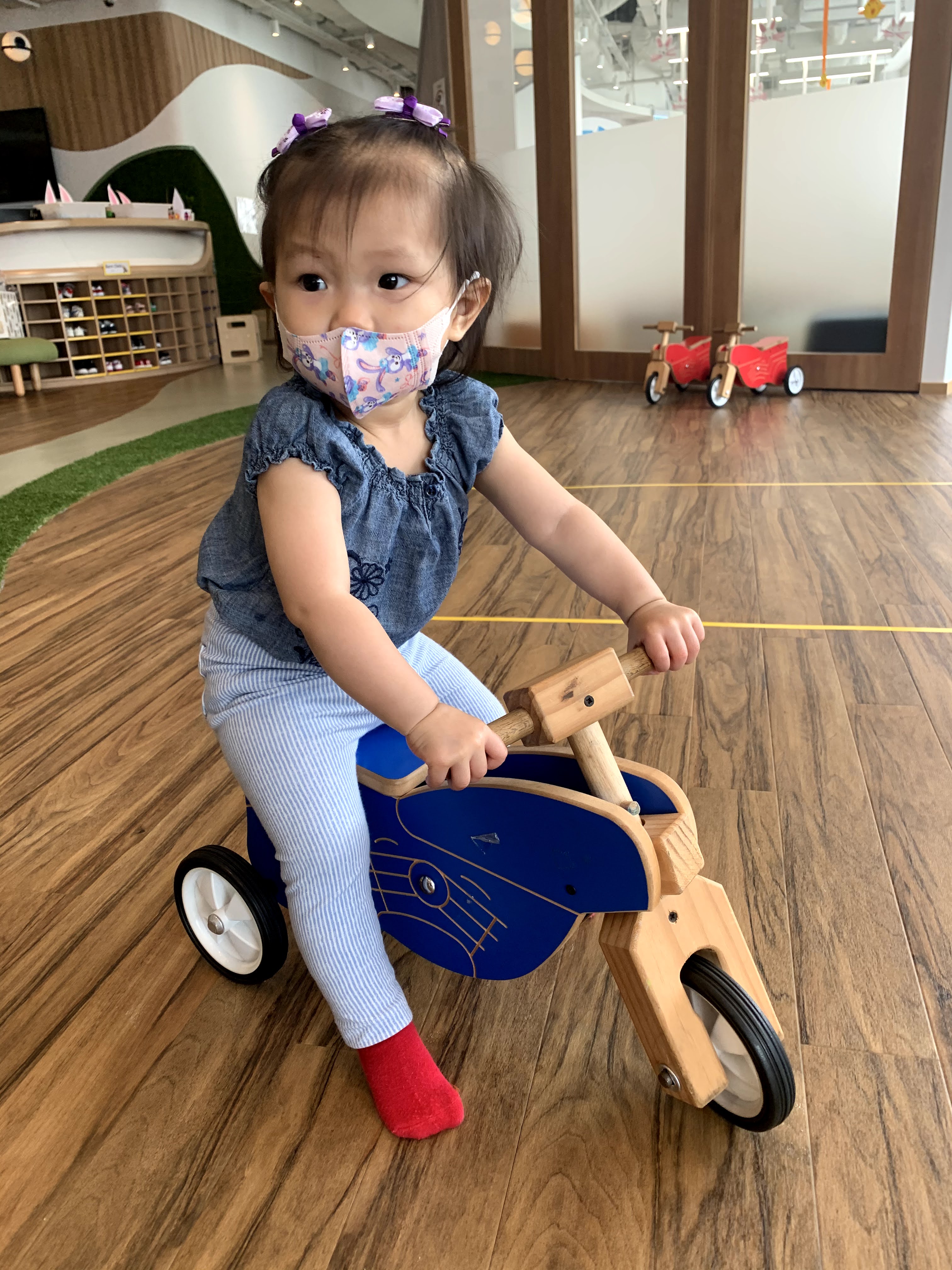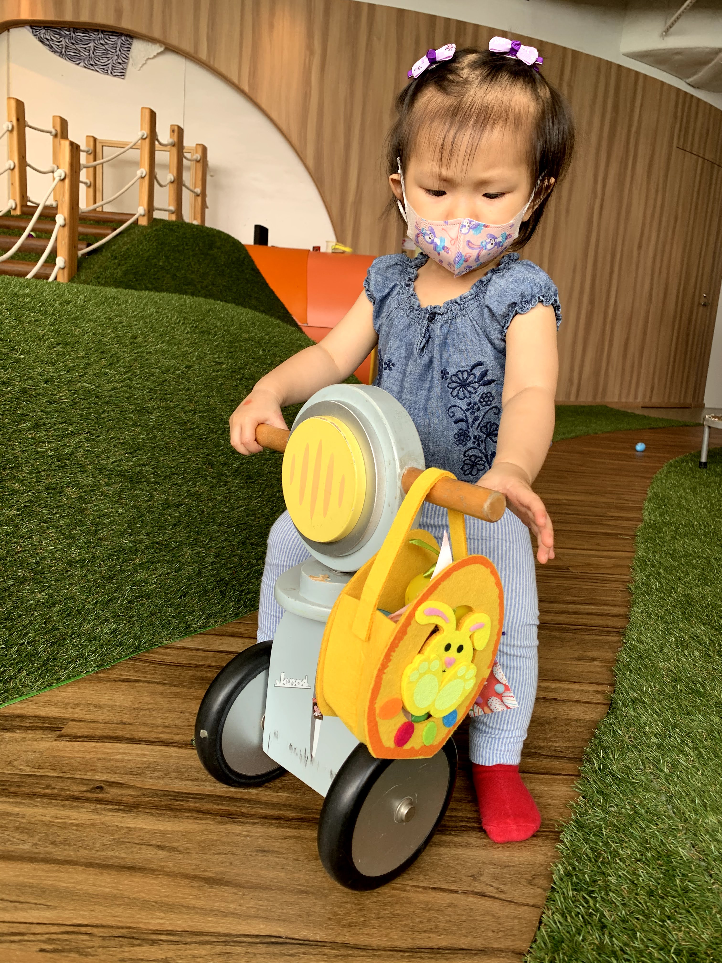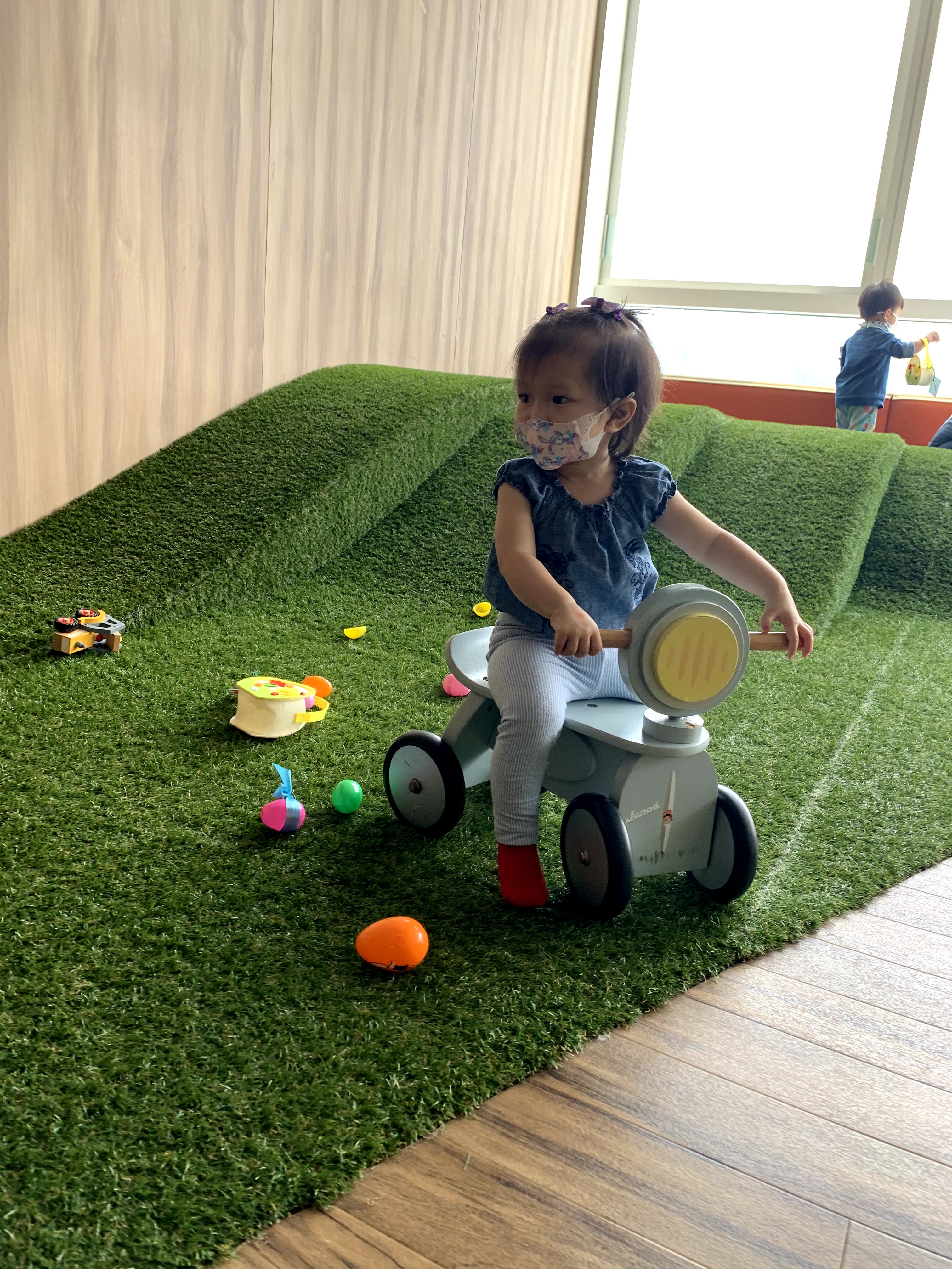 不計試堂,這天是啦啦的第 9 堂,我每次都會讓啦啦早15 分鐘來玩學校的設施和玩具,她一來到就好開心,也從每次她選擇要玩的東西看到她的改變。最近她都愛坐車或騎木馬!