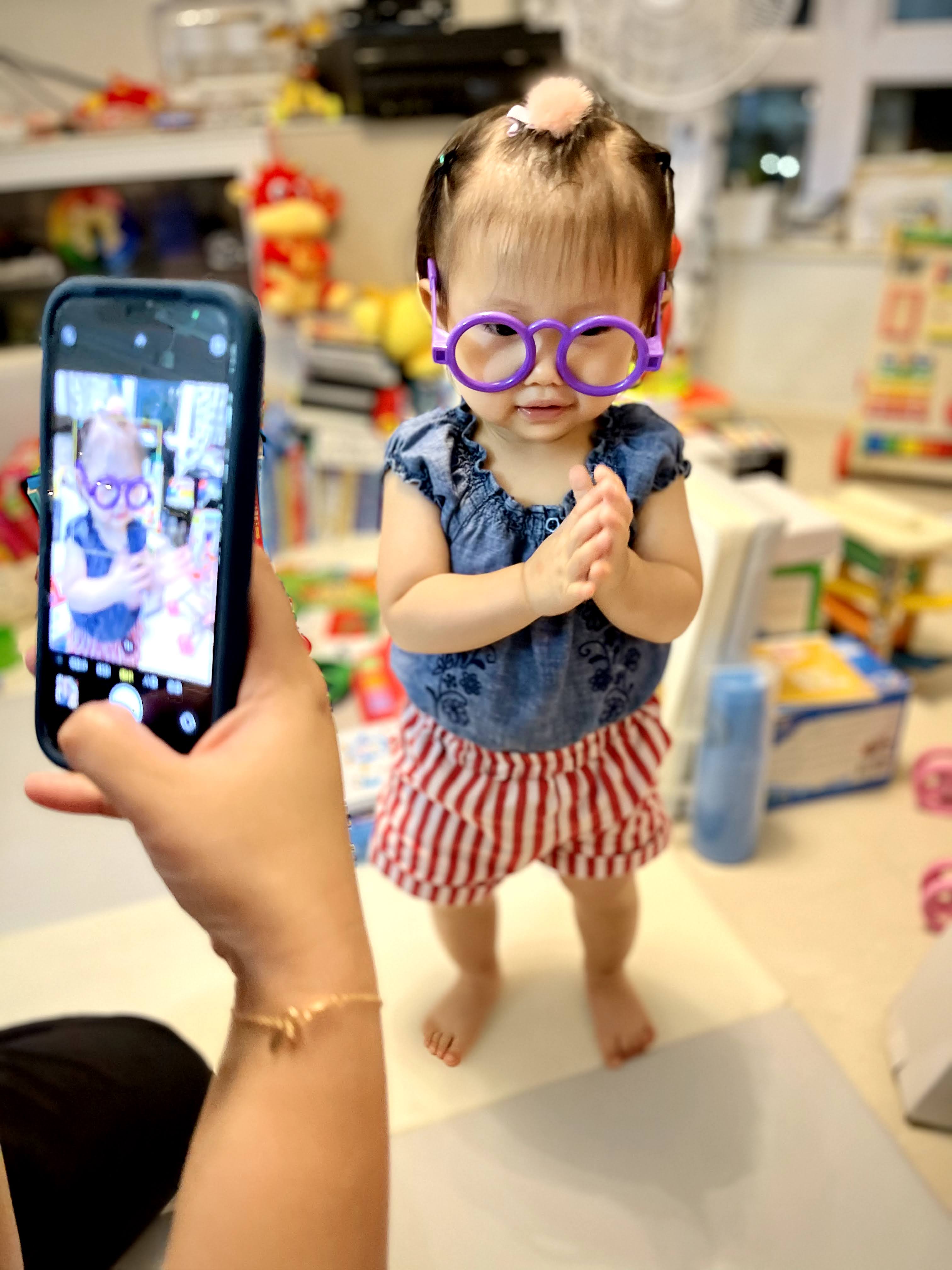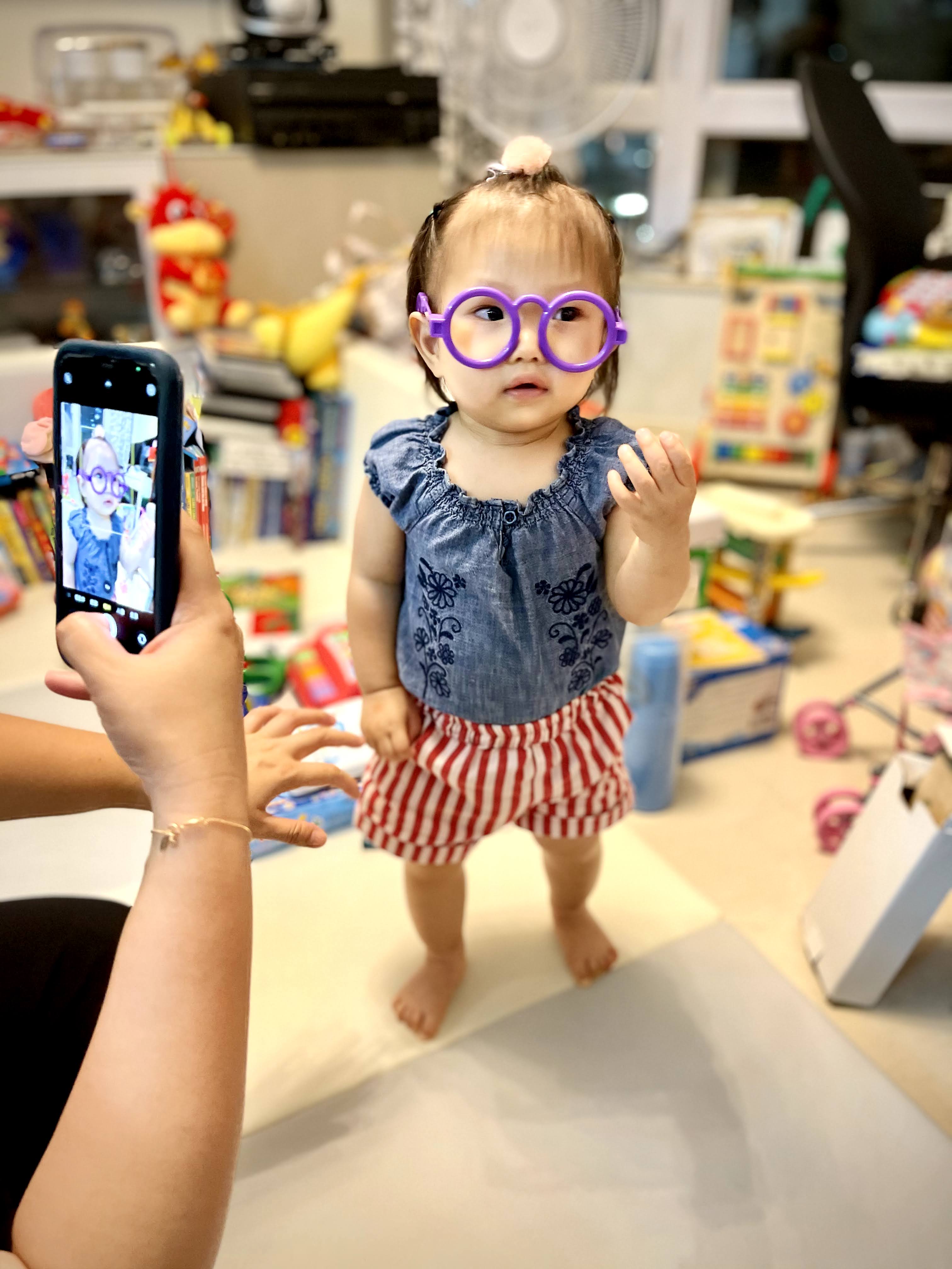 Gracelyn 表姐的扮醫生玩具有副眼鏡,媽媽拿了幫啦啦戴上… 好可愛呢!(為甚麼醫生玩具要有眼鏡呢?醫生都是戴眼鏡的?哈哈)