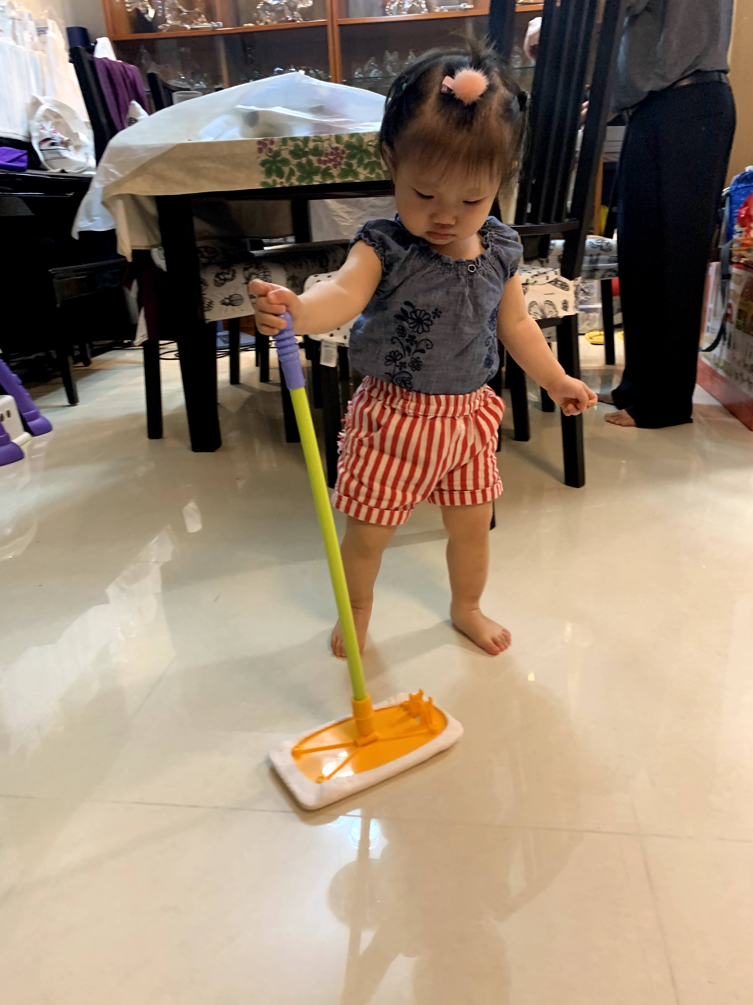 好吧,幫忙清潔打掃,讓大人們可休息一下。good girl!