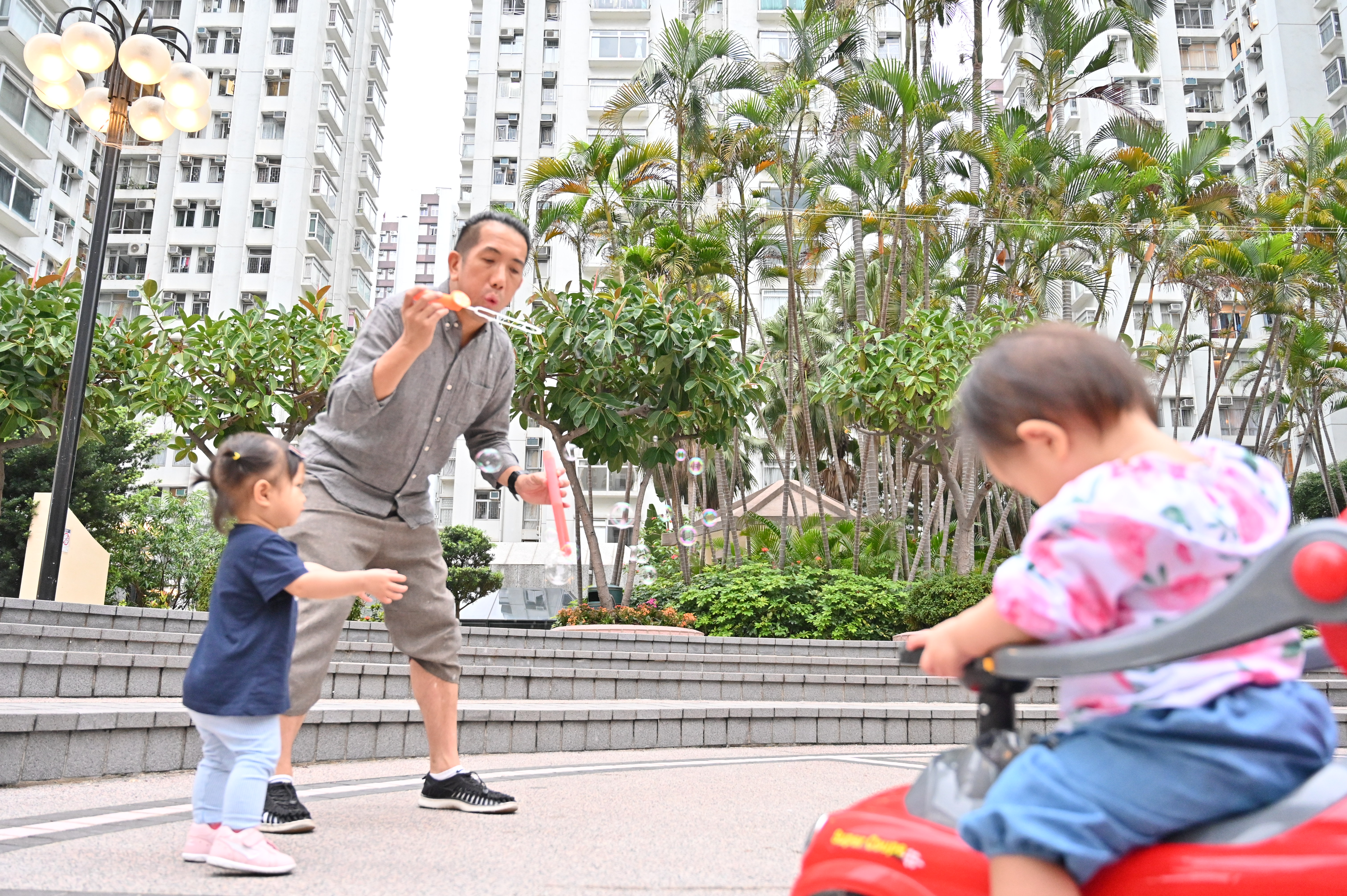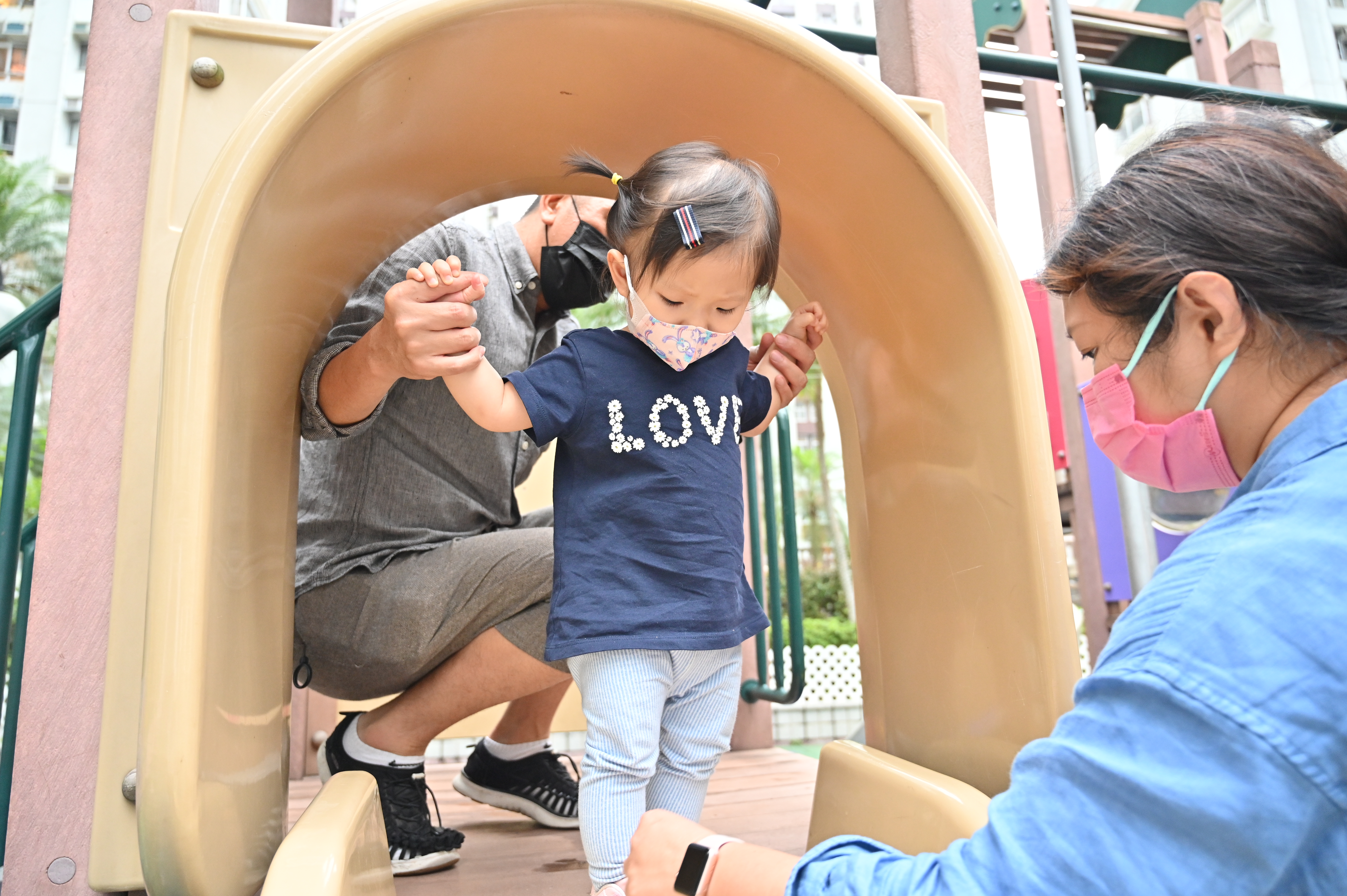 吃過天晴媽媽親手造的甜品後,我們就出發到他們家樓下的遊樂場和平台玩。