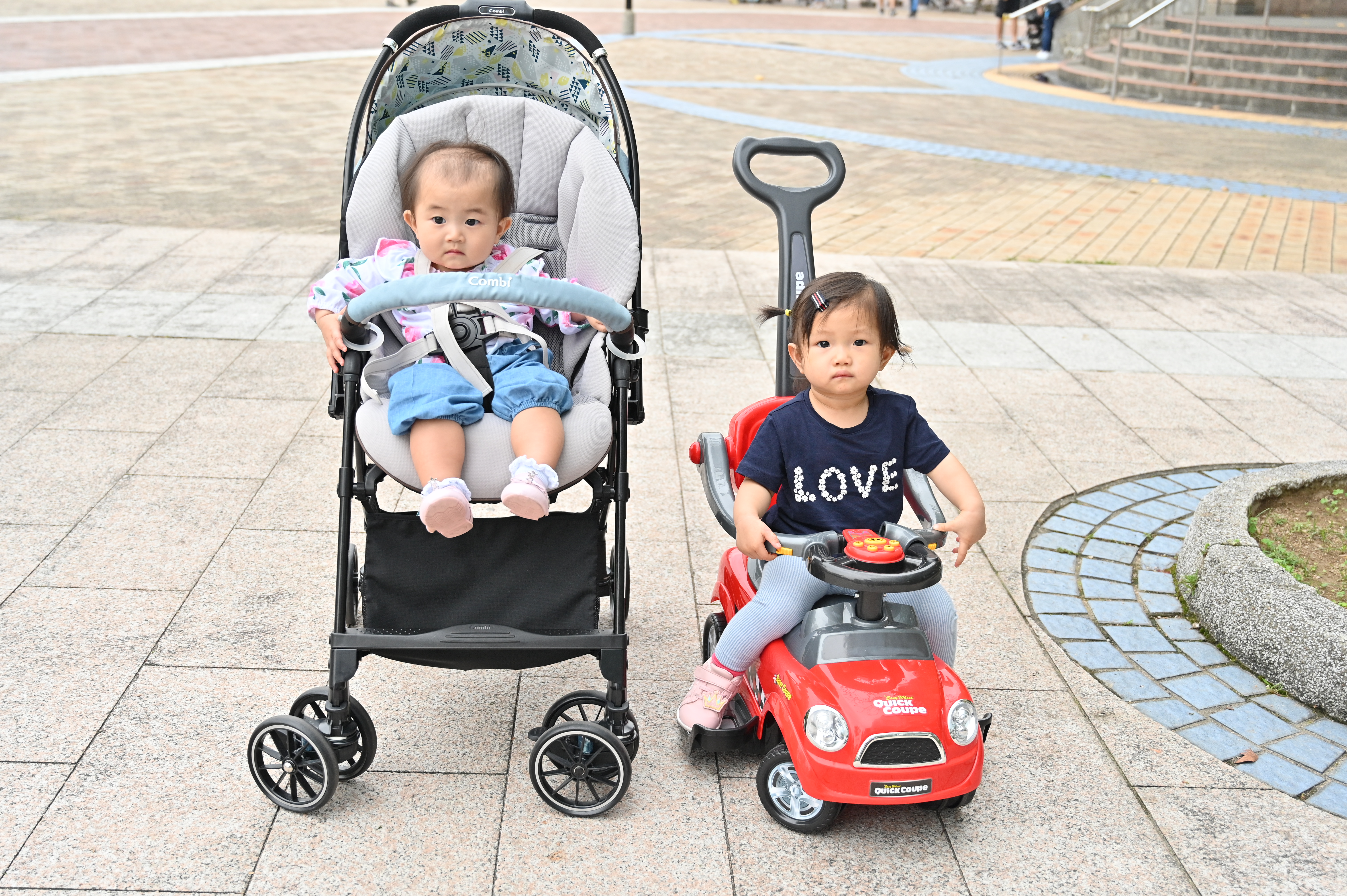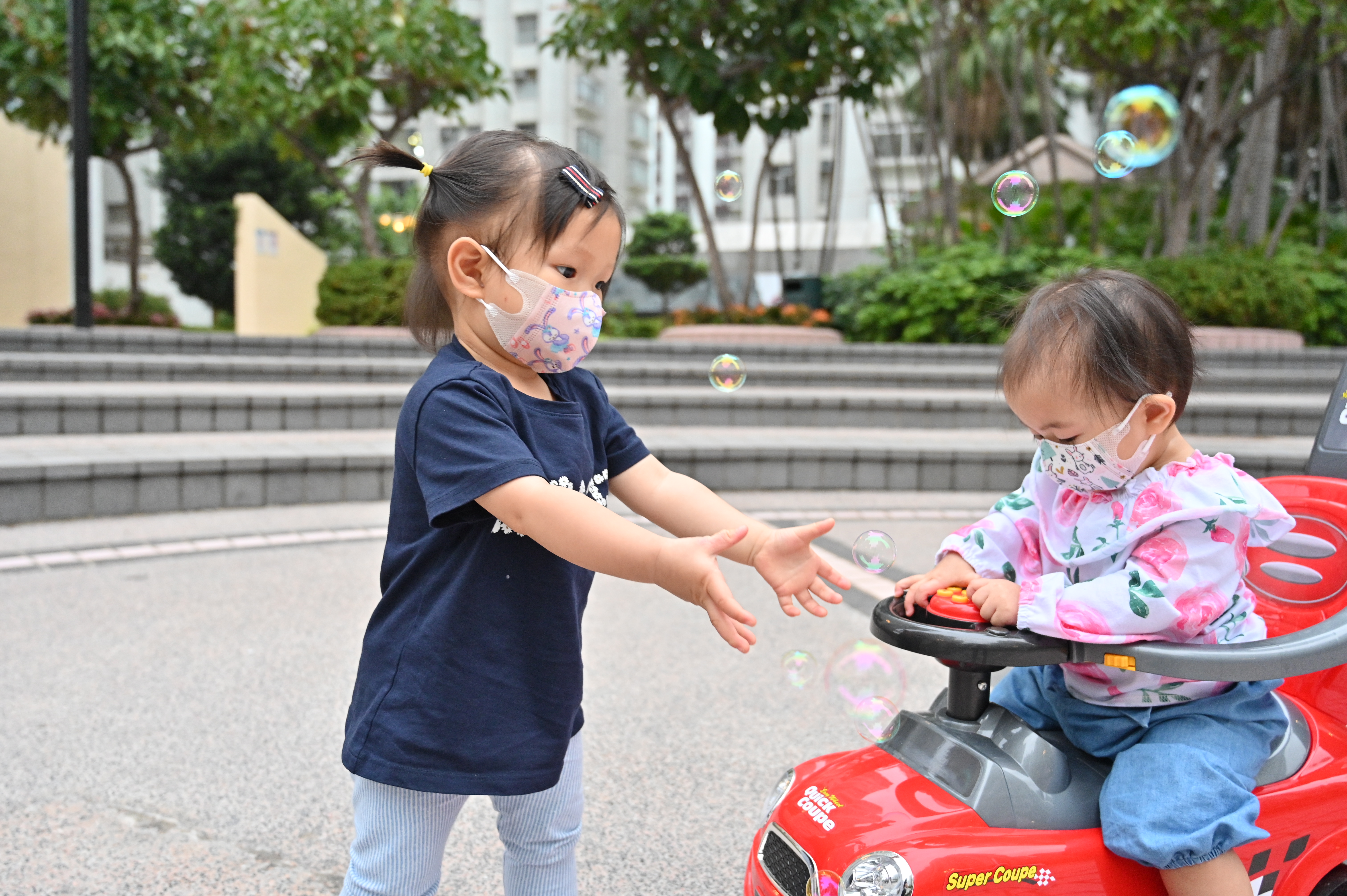 今天也帶了吹泡泡玩,是天晴 BB 第一次接觸吹泡泡呢!但她似乎對啦啦的紅色車較有興趣。這架紅色車在玩具反斗城買,除了代步,還有四首音樂和小響按,三百元有找,真是性價比非常高。(在公園也有其它小朋友對啦啦這架車很好奇)