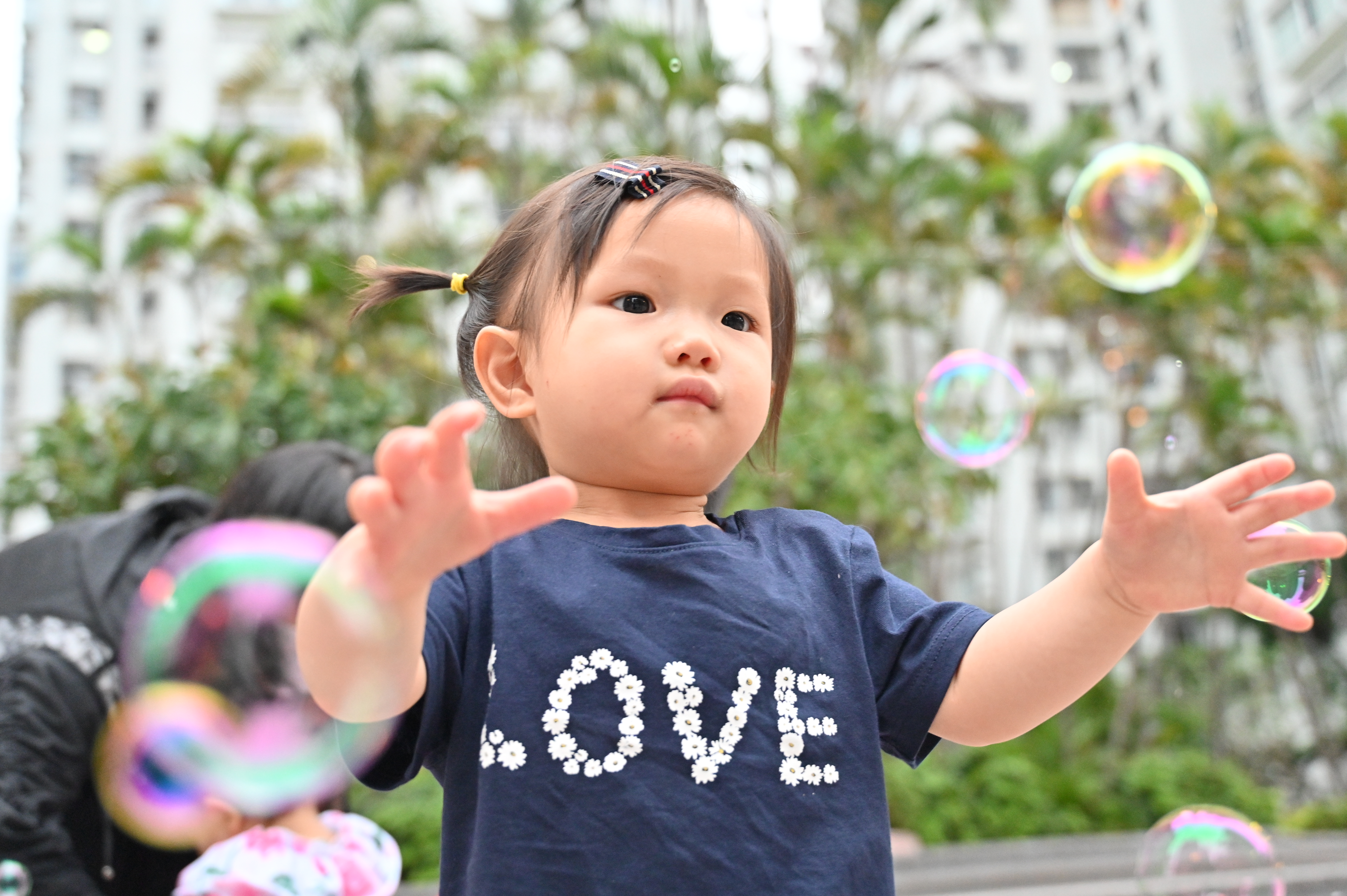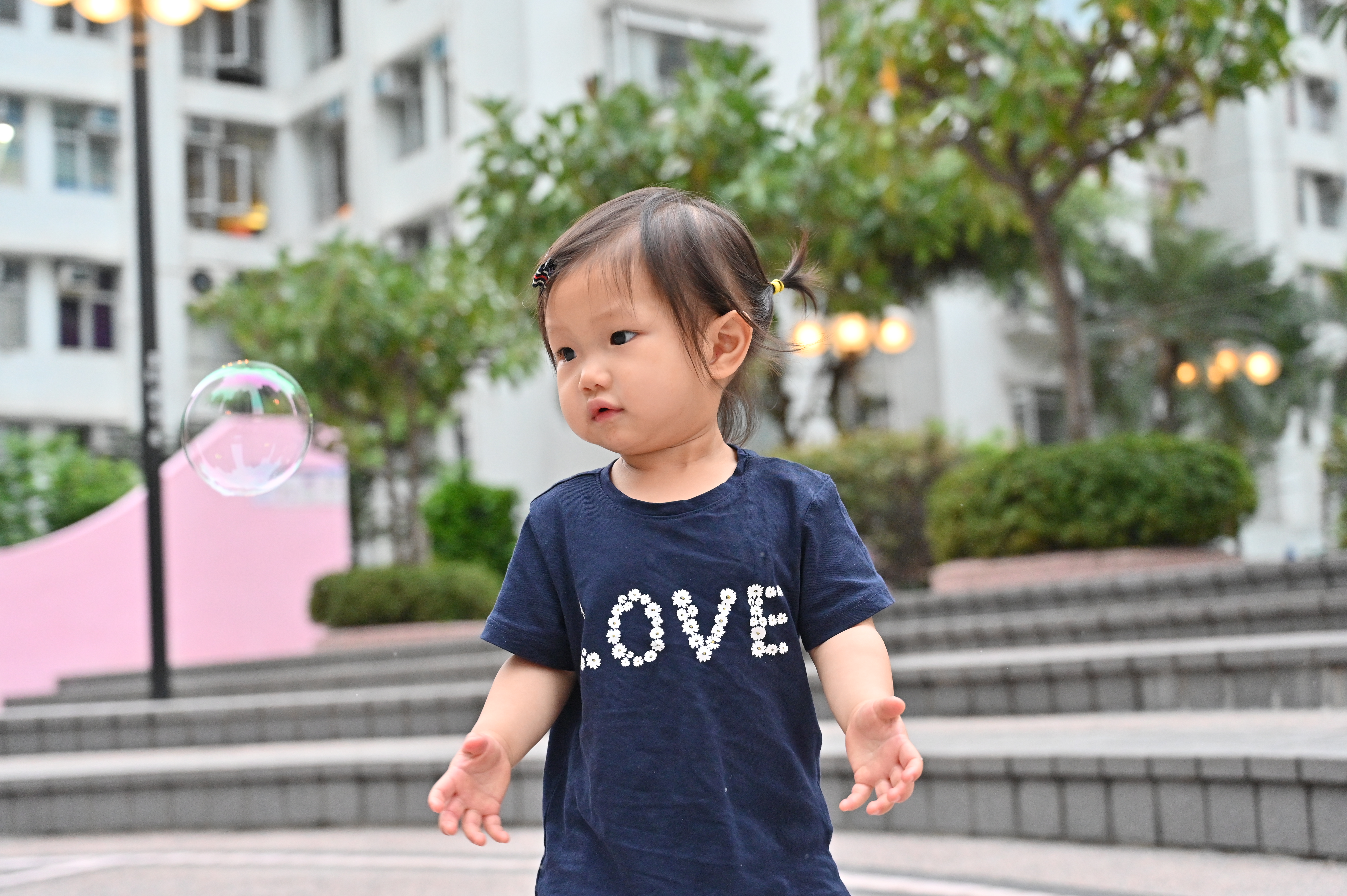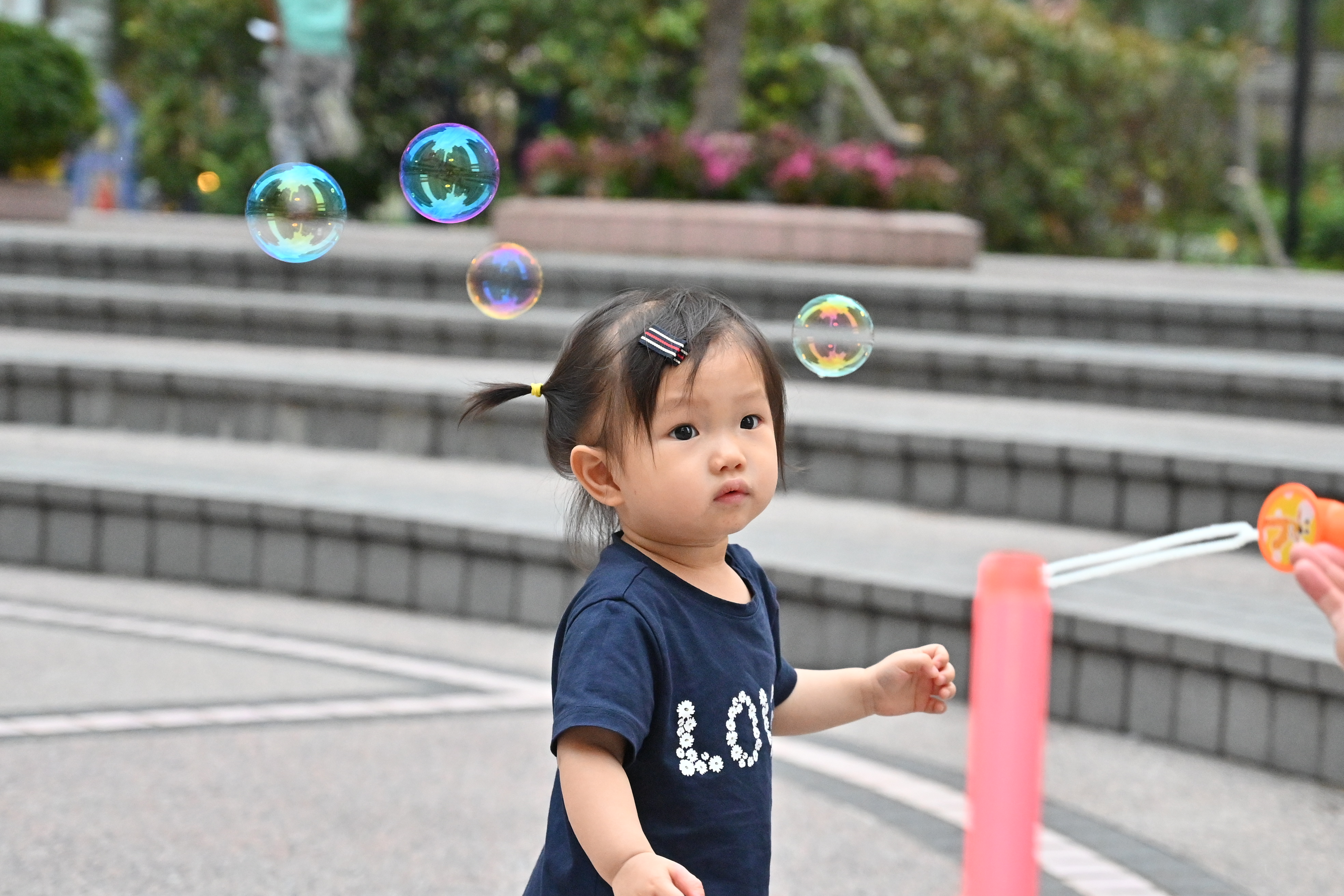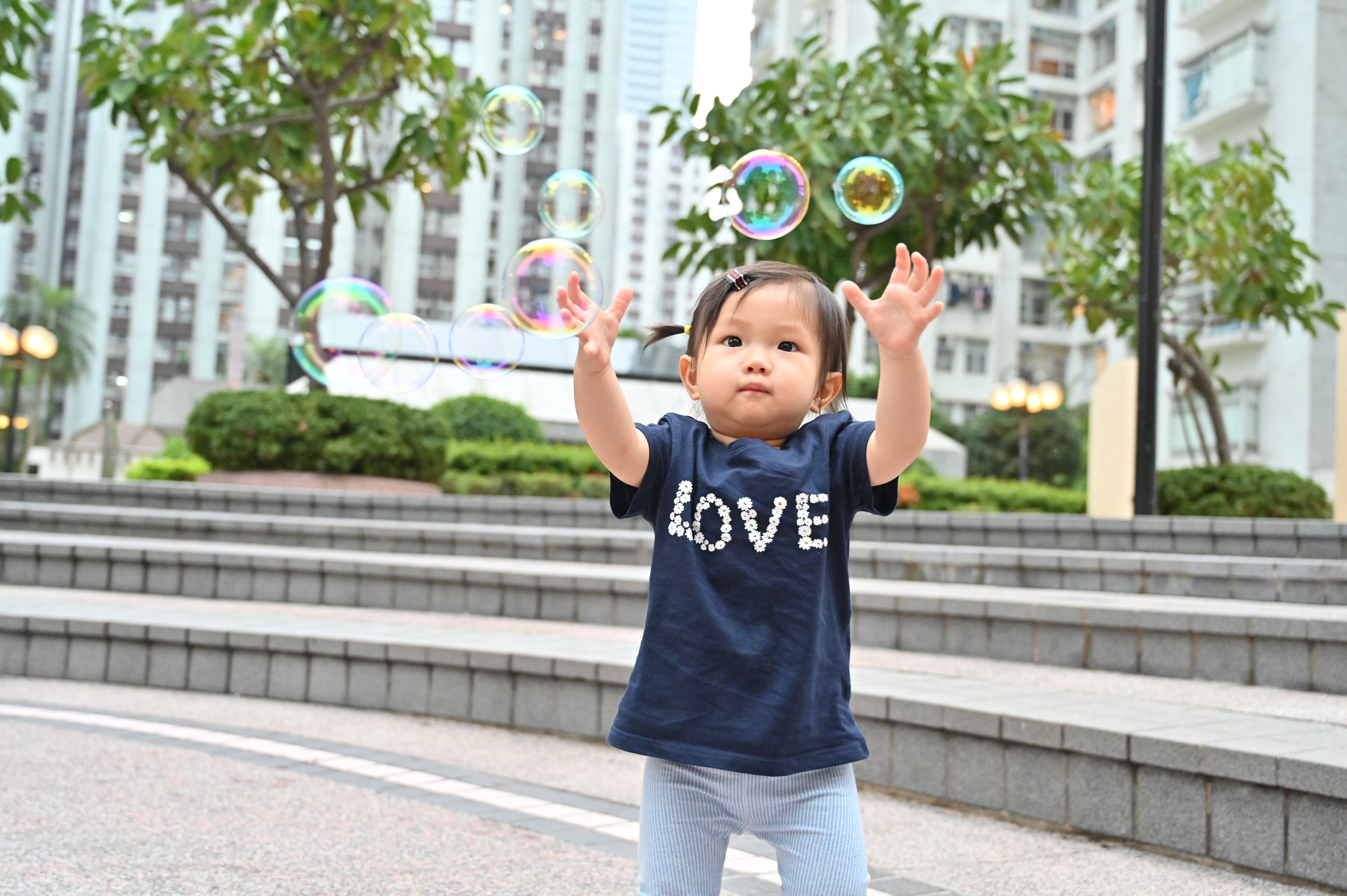 兩位爸爸都認為應該買一個自動放泡出來的機,那麼便可以有更多的肥皂泡,拍照效果更美,媽媽也不用吹得那麼辛苦(我真的吹了很久,鍛鍊肺活量…)。我一直沒有買的原因是那部機不方便我跟啦啦二人外出,而且,一開機,一定吸引一大群小朋友跑過來,而還是十五個月的啦啦必定很容易被撞倒…(暈)。