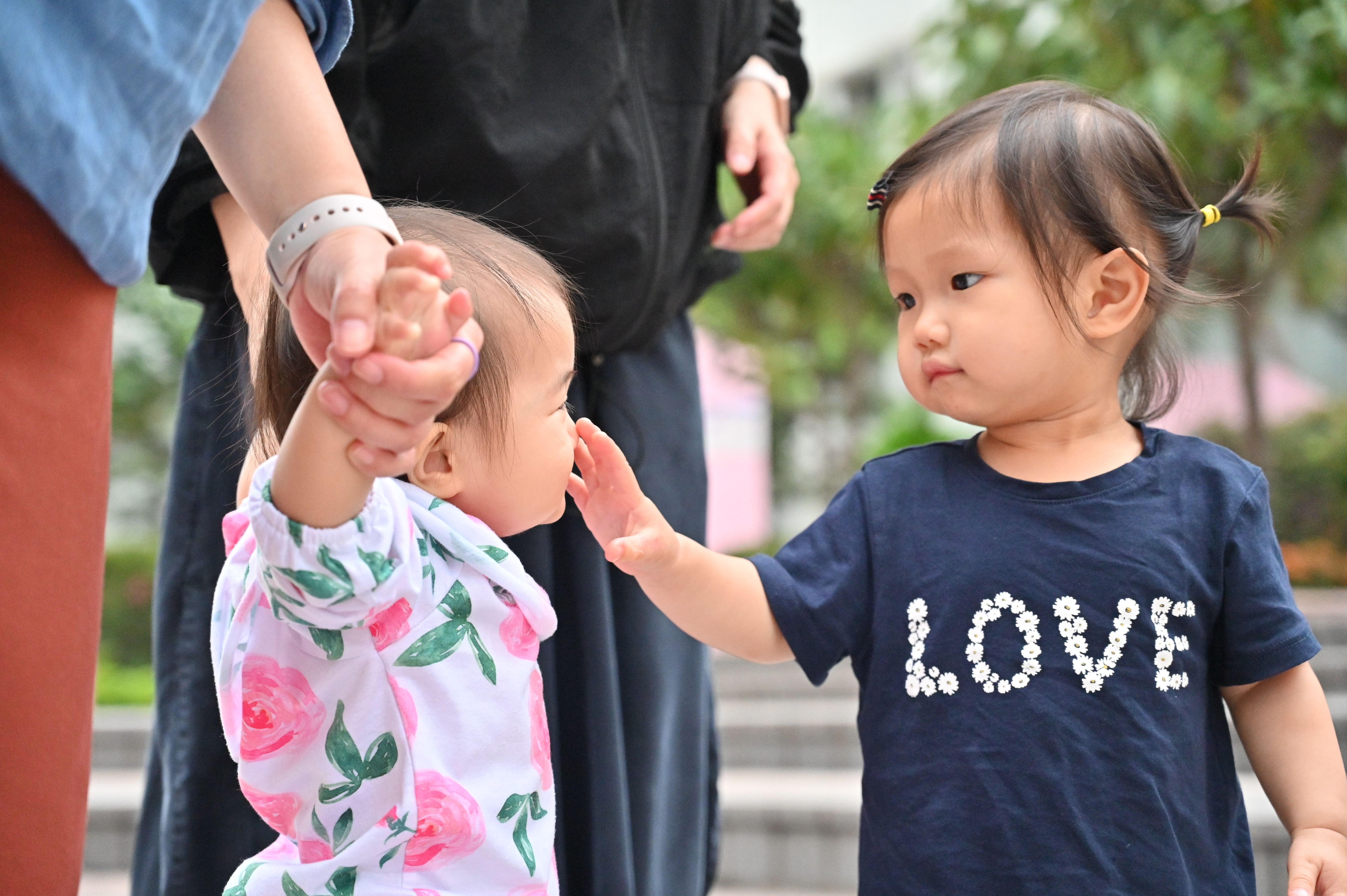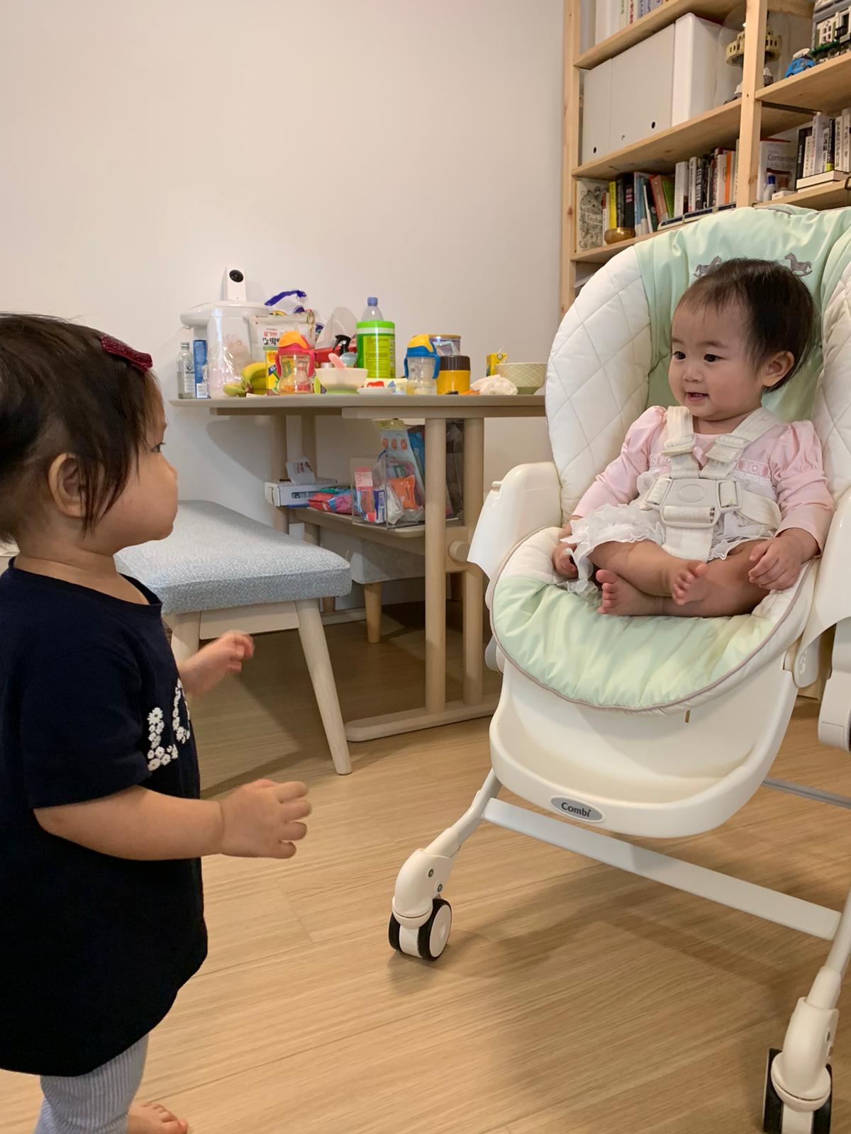 到達天晴家,她們兩個 babies 很快就有互動了!好像認得彼此!
