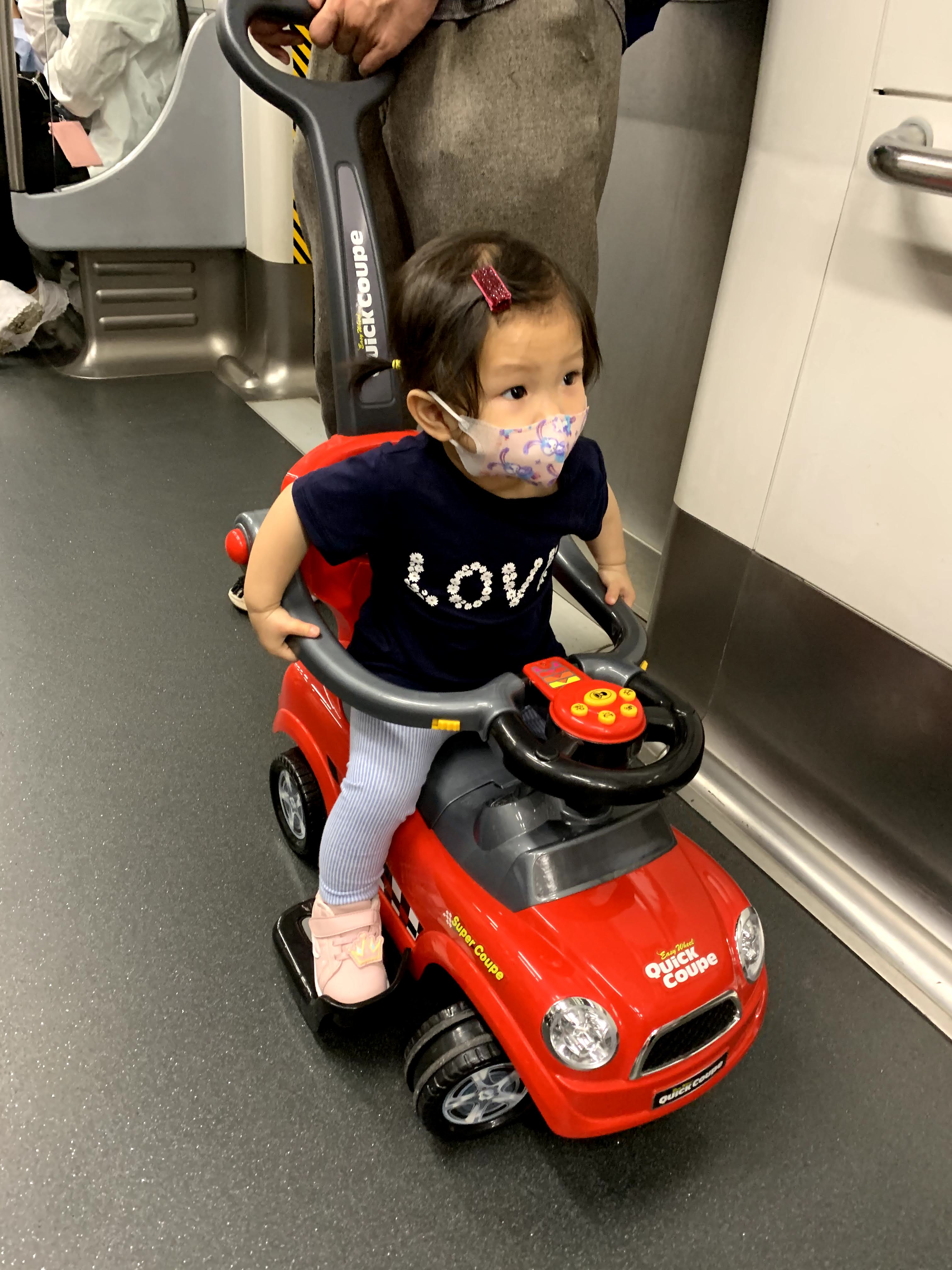 不想去商場花昂貴的泊車費,更不想因為要泊車優惠而買不是立即需要用的東西,所以今天決定坐船和坐地鐵去。啦啦第二次坐船了!第一次帶著她的「紅色戰車」坐地鐵(比坐嬰兒車乖啊)。