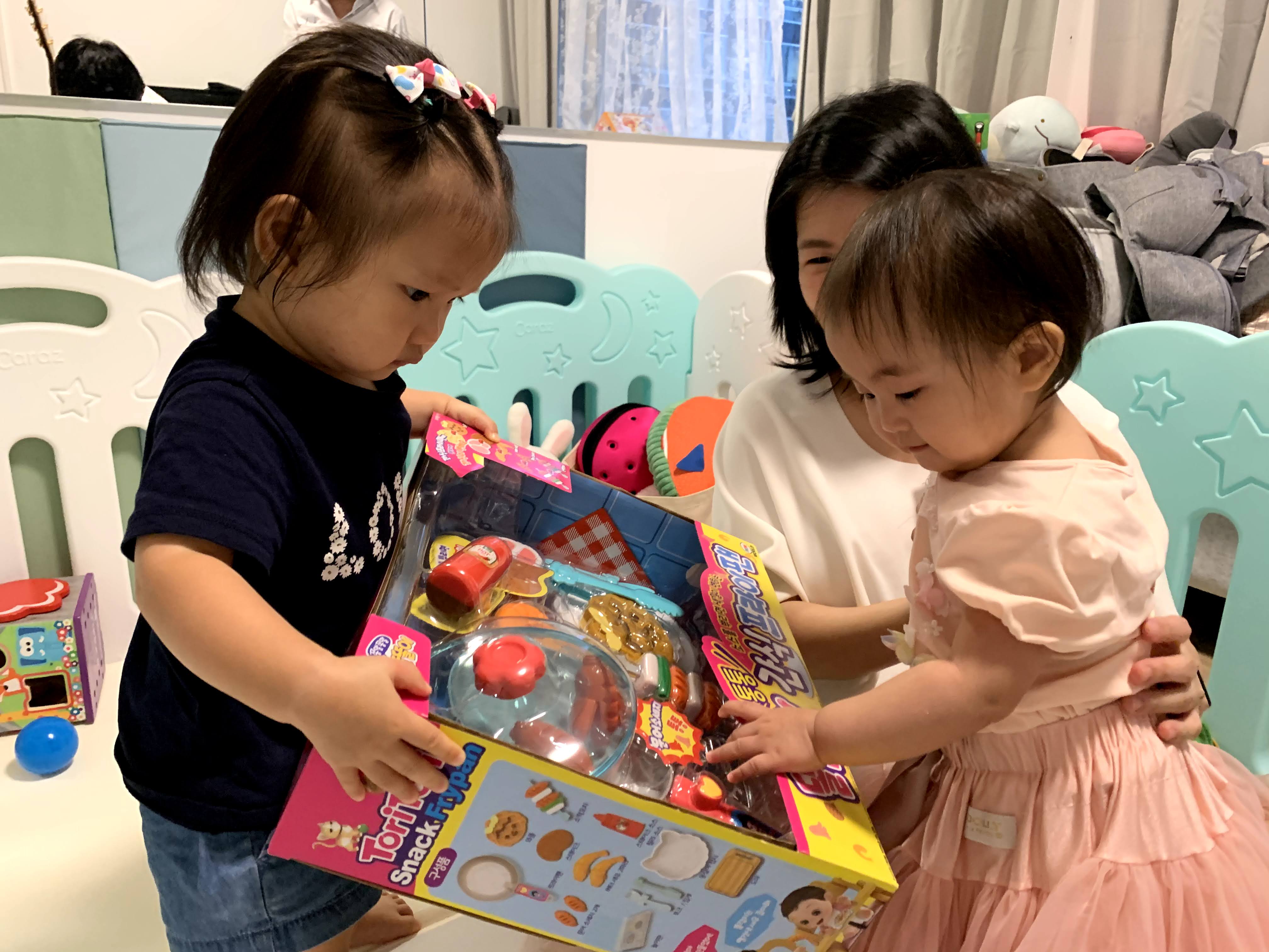 啦啦第一次親手送上生日禮物呢!希望天晴會喜歡吧!我們探訪了幾遍,發覺天晴沒有「煮飯仔」玩具,就選了這個給她了!啦啦最近也很喜歡在家「煮飯」,下次可以一起開「大食會」了!