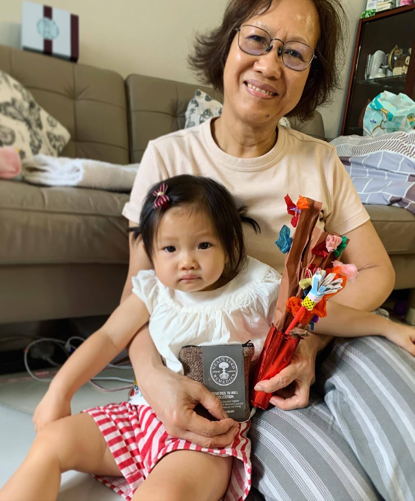 第一個節目就是在家整理一下啦啦和我一起手做的花花。然後便見了我和黃老公的媽媽,即婆婆嫲嫲,希望她們喜歡啦啦做的花啦!要身體健康開開心心。