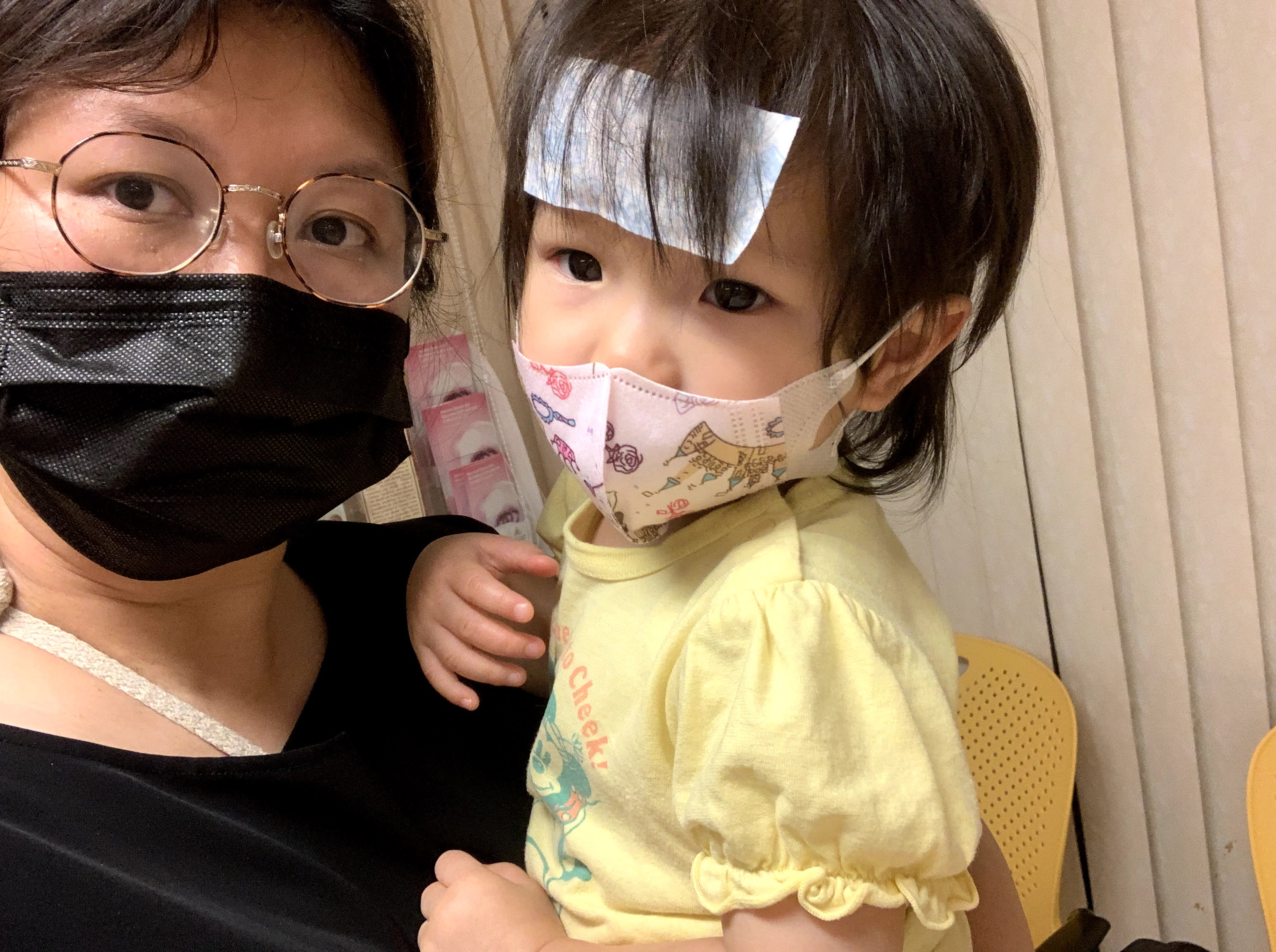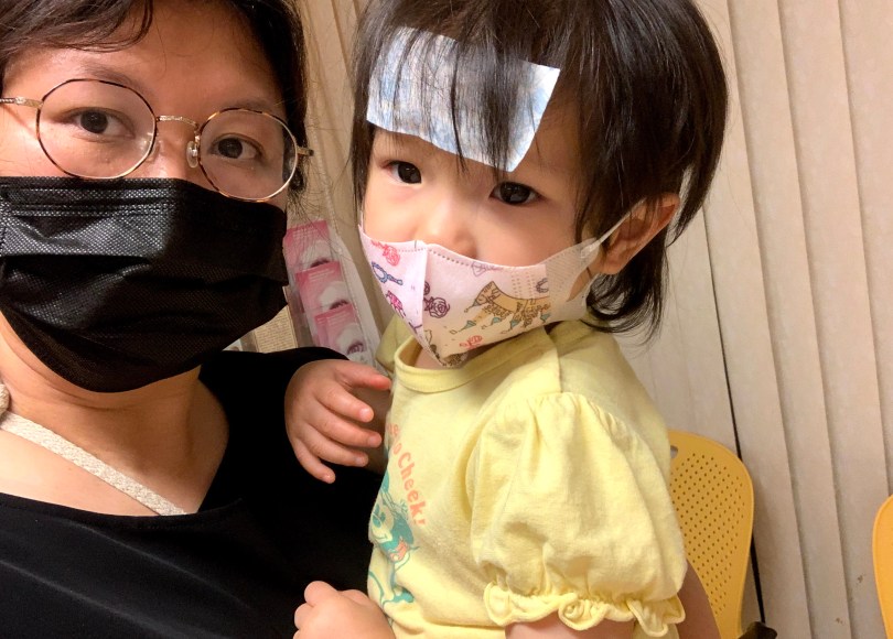 到達後,登記(啦啦已有身份證,但是由於第一次登記,醫院也要看出世紙的 soft copy),量體溫,體重(啦啦是 10.3 kg 了),幸好她暫時也乖,醫院的人也讚她乖,也幫忙弄濕我帶來的毛巾讓我可幫 baby 抹抹身手腳降溫一下。