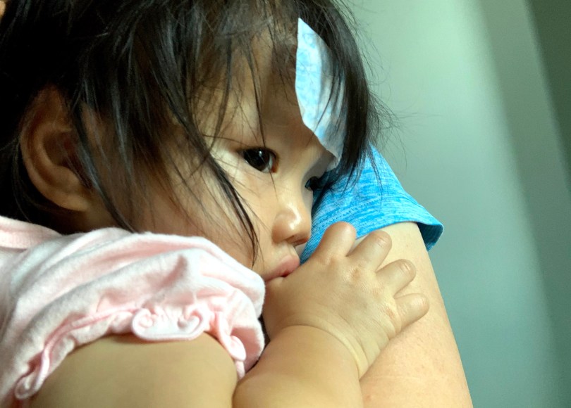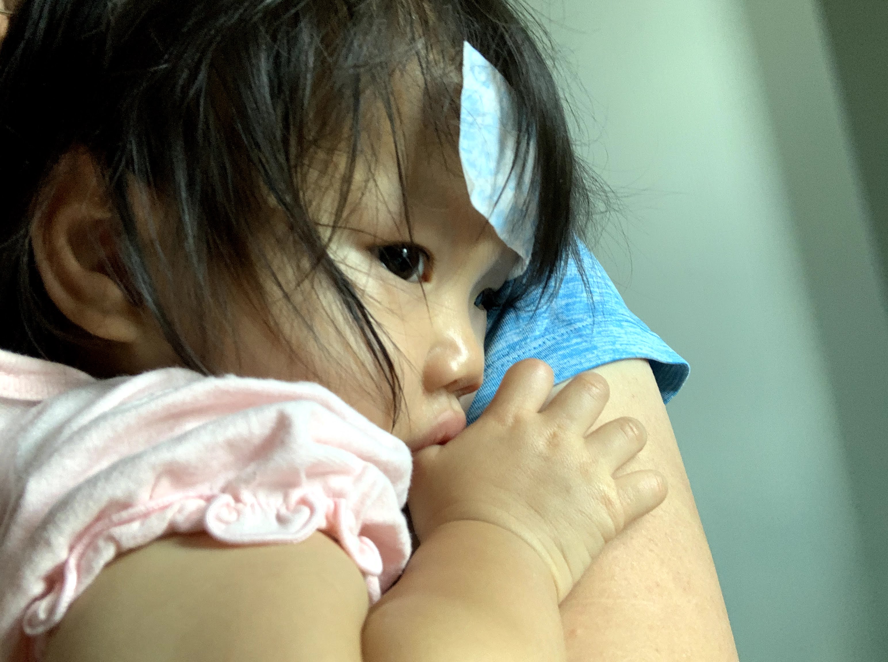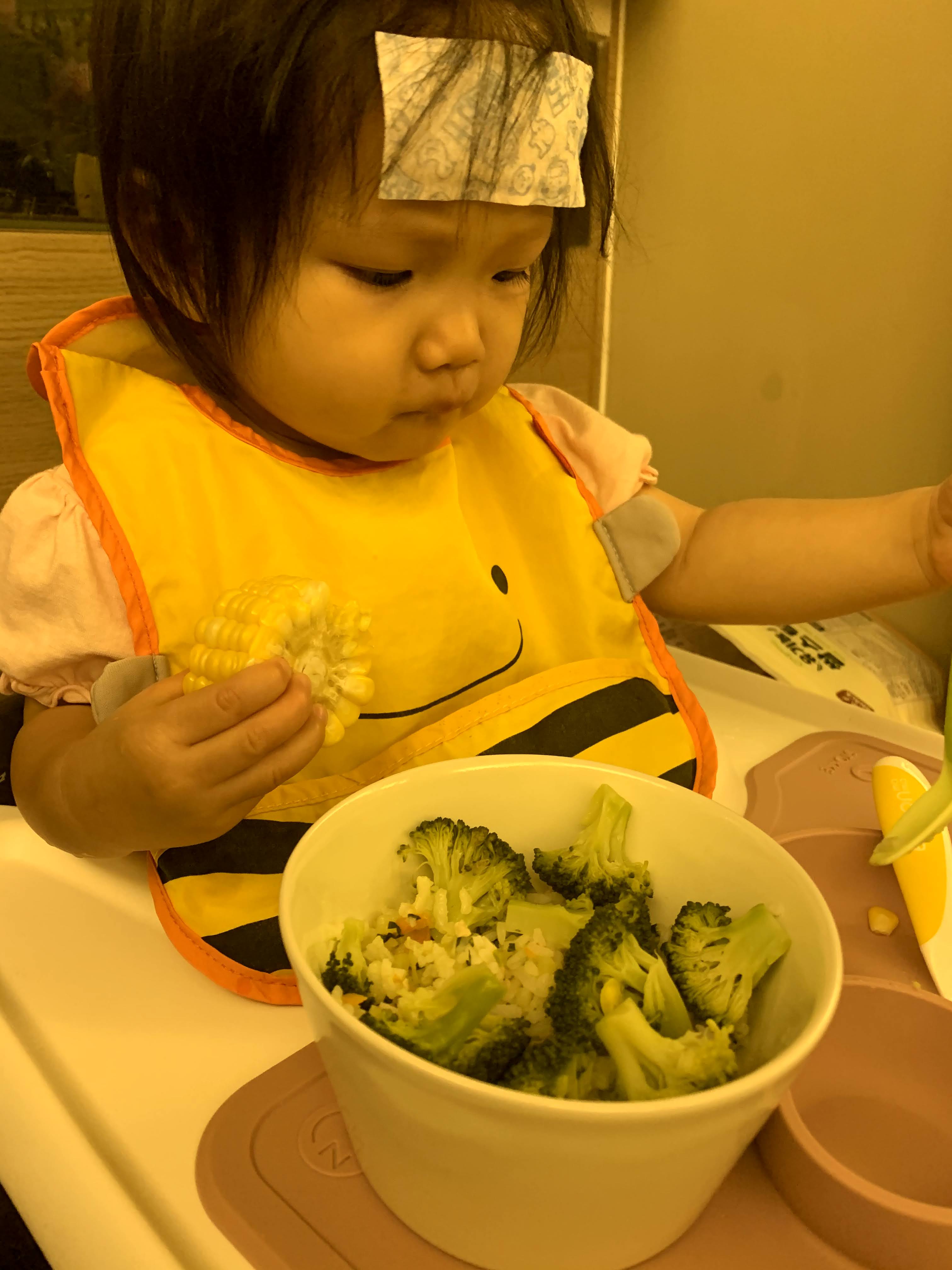 發燒的小朋友和大人一樣,最好要多喝水和休息。這幾天我都跟她玩了很多次「cheers 碰杯」,因為 cheers 後她就會大口大口喝水哈哈。