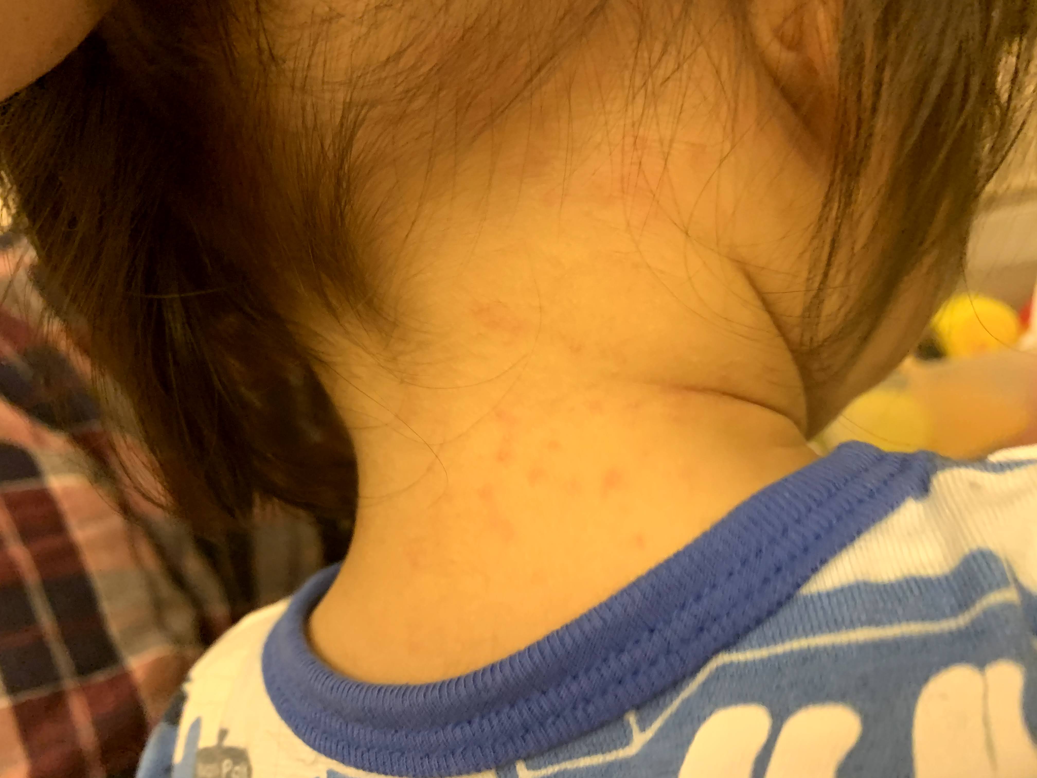 去到四天後終於穩定地退燒了,晚上發現頸部,身體開始出疹… 原來是玫瑰疹呢!(出疹的照就只分享一張最 mild 的紀錄一下)嬰兒玫瑰疹是很多很多幼童都會患過的病,是一種良性疾病,說是患過一次後便有抗體所以不會再患第二次了!