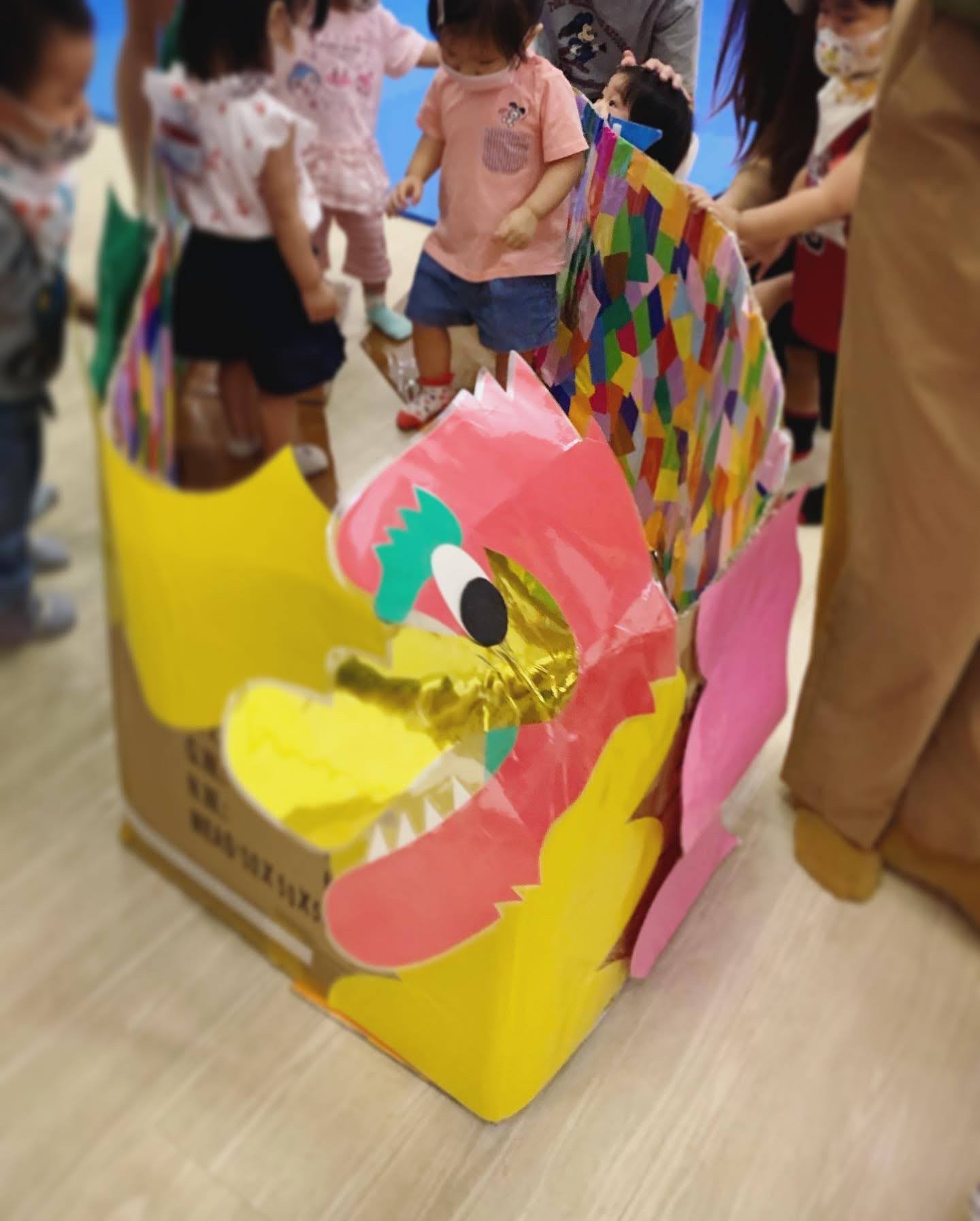 她上的 Pebbles Playgroup 較早前就有學習端午節,學校還出動了一隻大大的紙皮龍舟,超可愛!(應該是家長比小朋友更開心哈哈)學校造的龍舟內裡是七彩繽紛,小朋友都歡喜地走進去玩。進去前每人也分派一塊麟片,大家可以貼在船的外殼,裝飾一下。