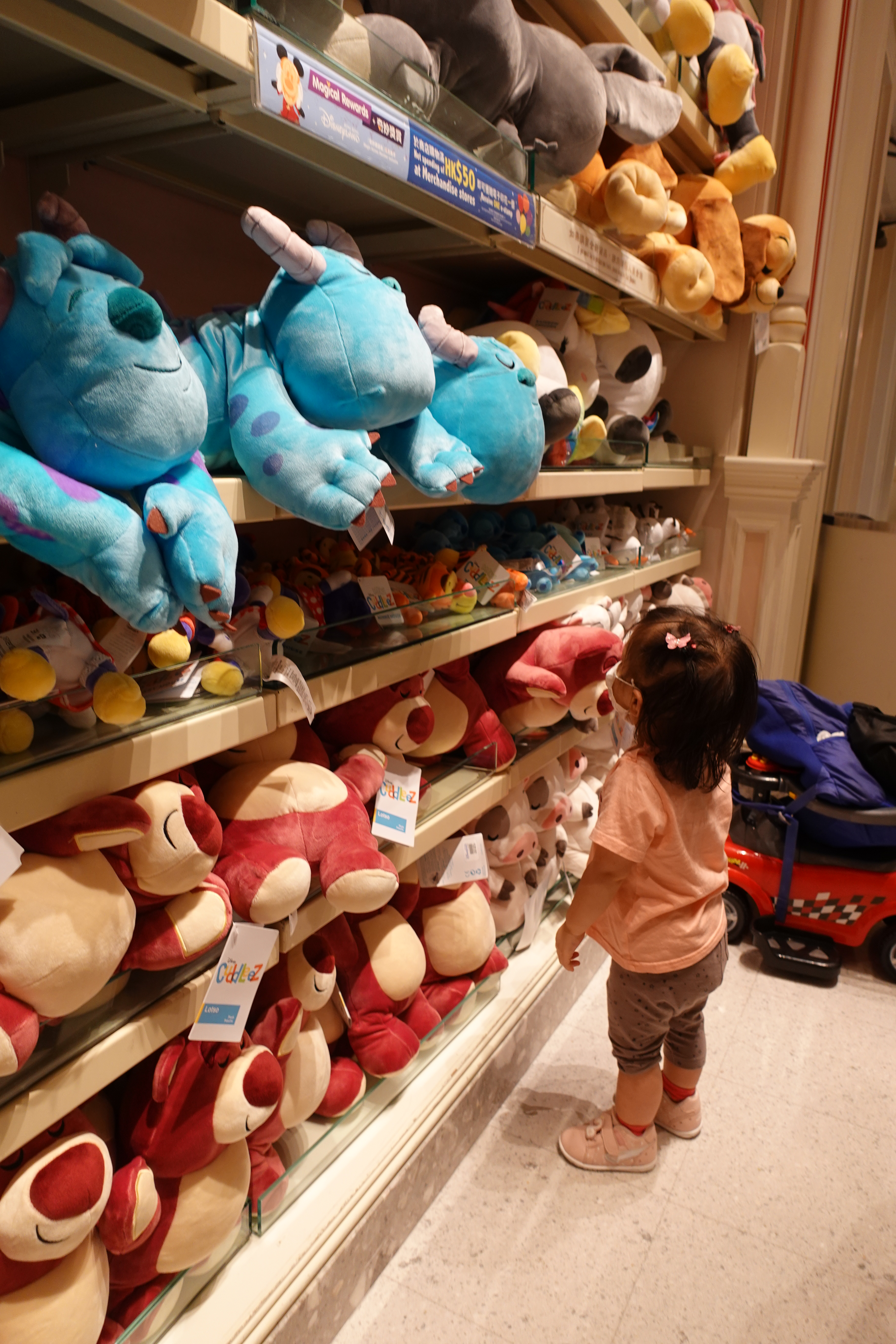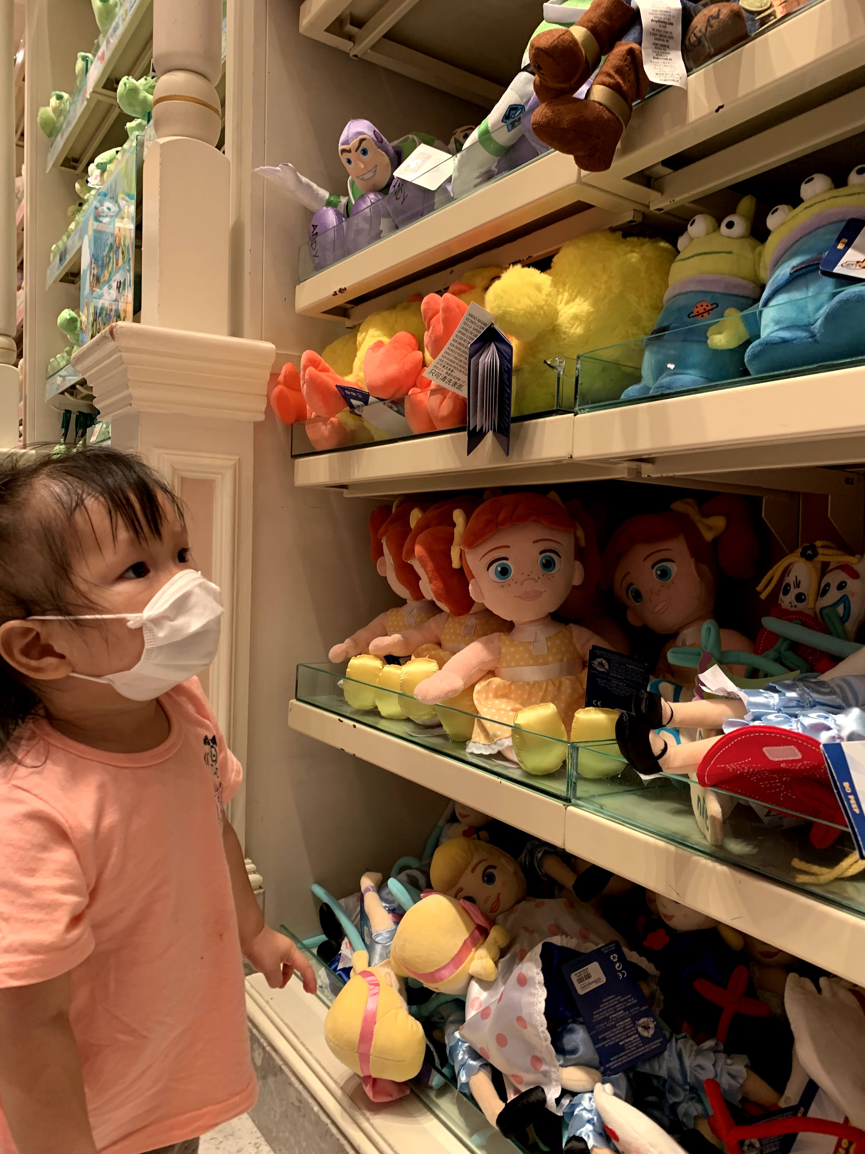 最後的節目就是逛商店!啦啦很開心,目不轉睛看著貨架上的娃娃。(啦啦暫時也很乖,不會扭計要買玩具)離開樂園時,已經天黑了!
