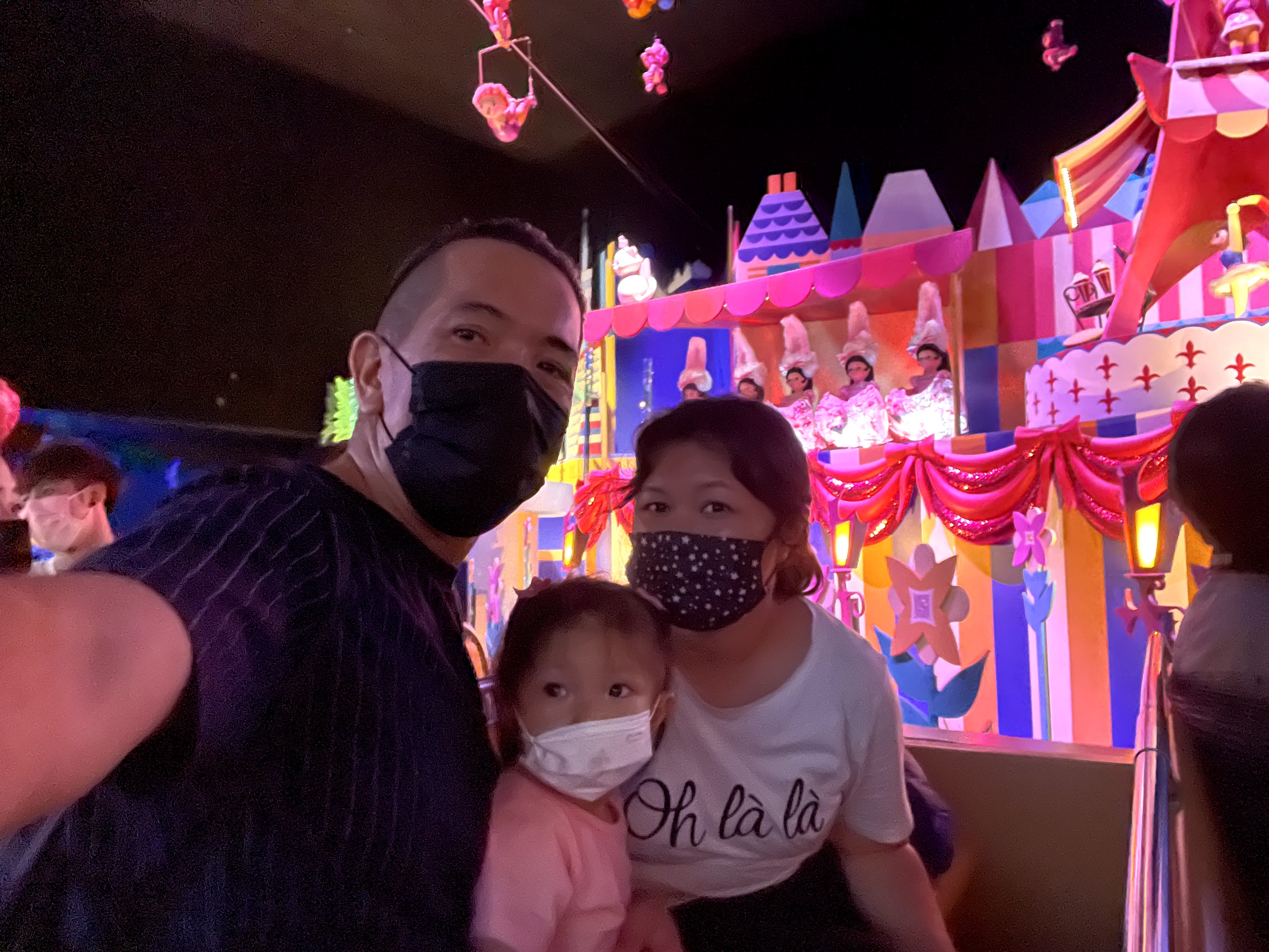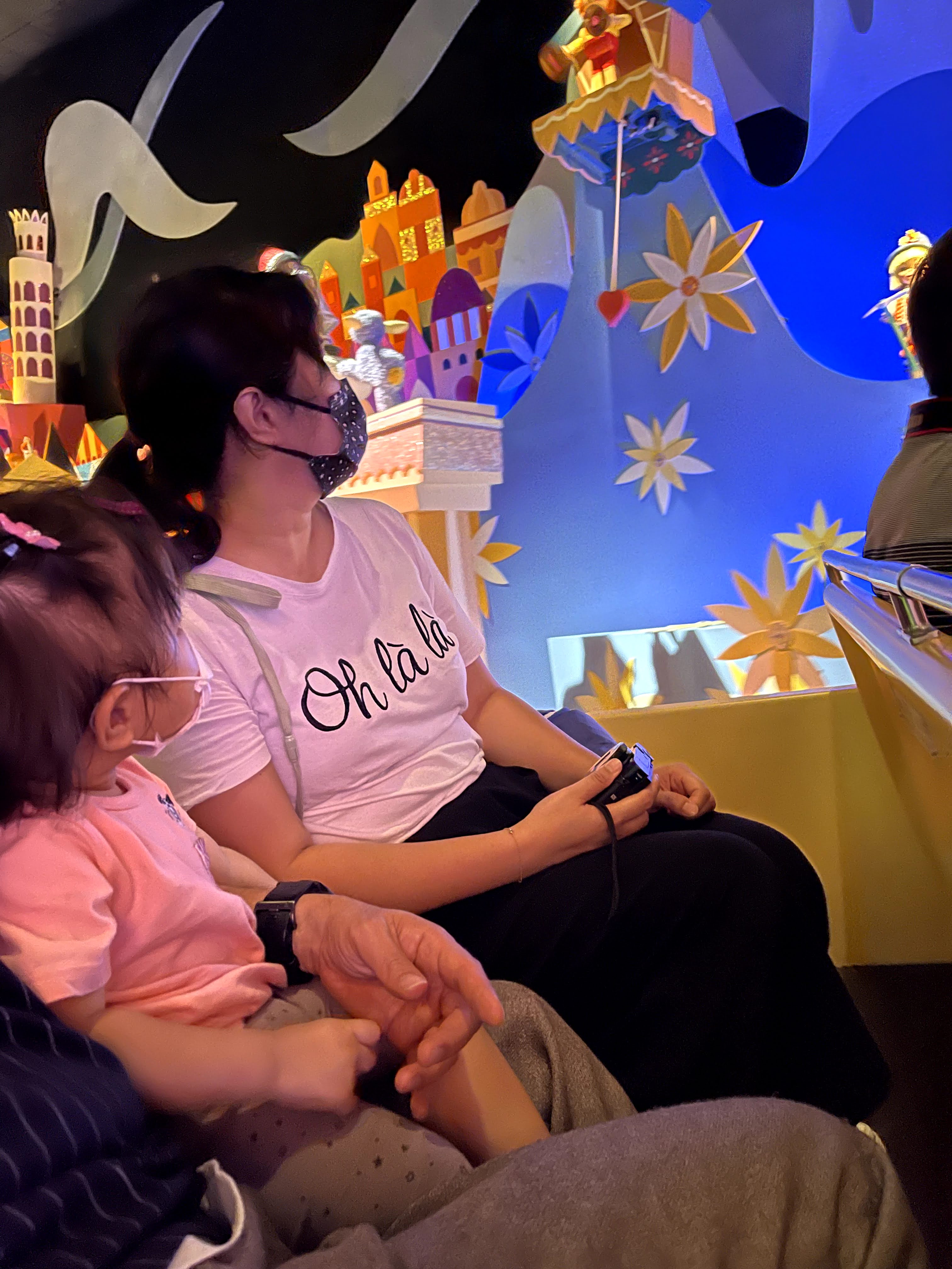 終於去我最期待的「小小世界」,從我第一次去廸士尼樂園開始,我已經好喜歡,七彩繽紛,還有不同語言唱著 It’s a Small World!終於第一次可以帶著女兒來,好激動呢!啦啦真的非常專心去看呢!