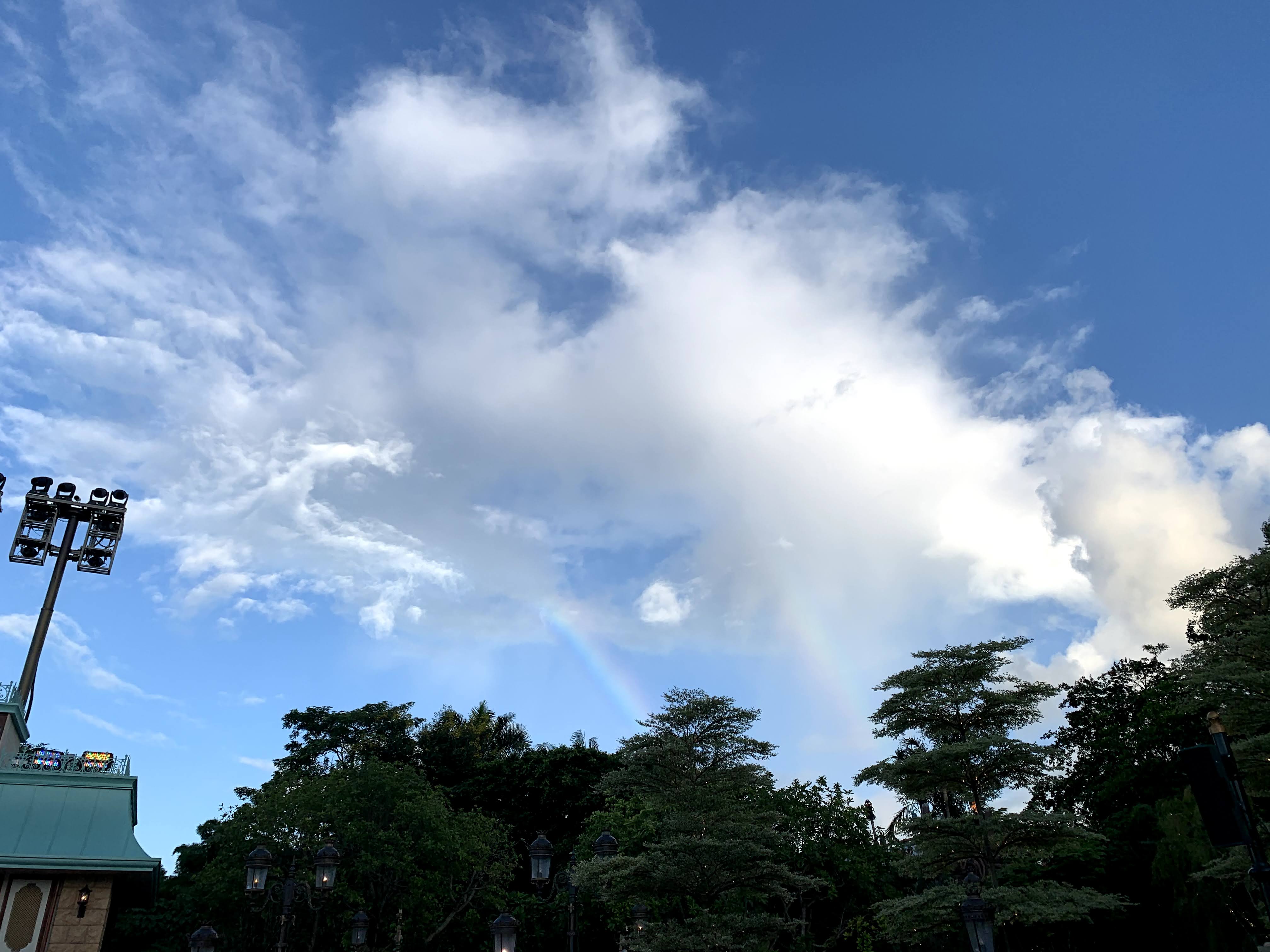 然後發現,原來廸士尼15 週年有全新演出呢,就在美麗的城堡前!演出開始之前,竟然還讓我們看到雙彩虹啊!幸運呢!