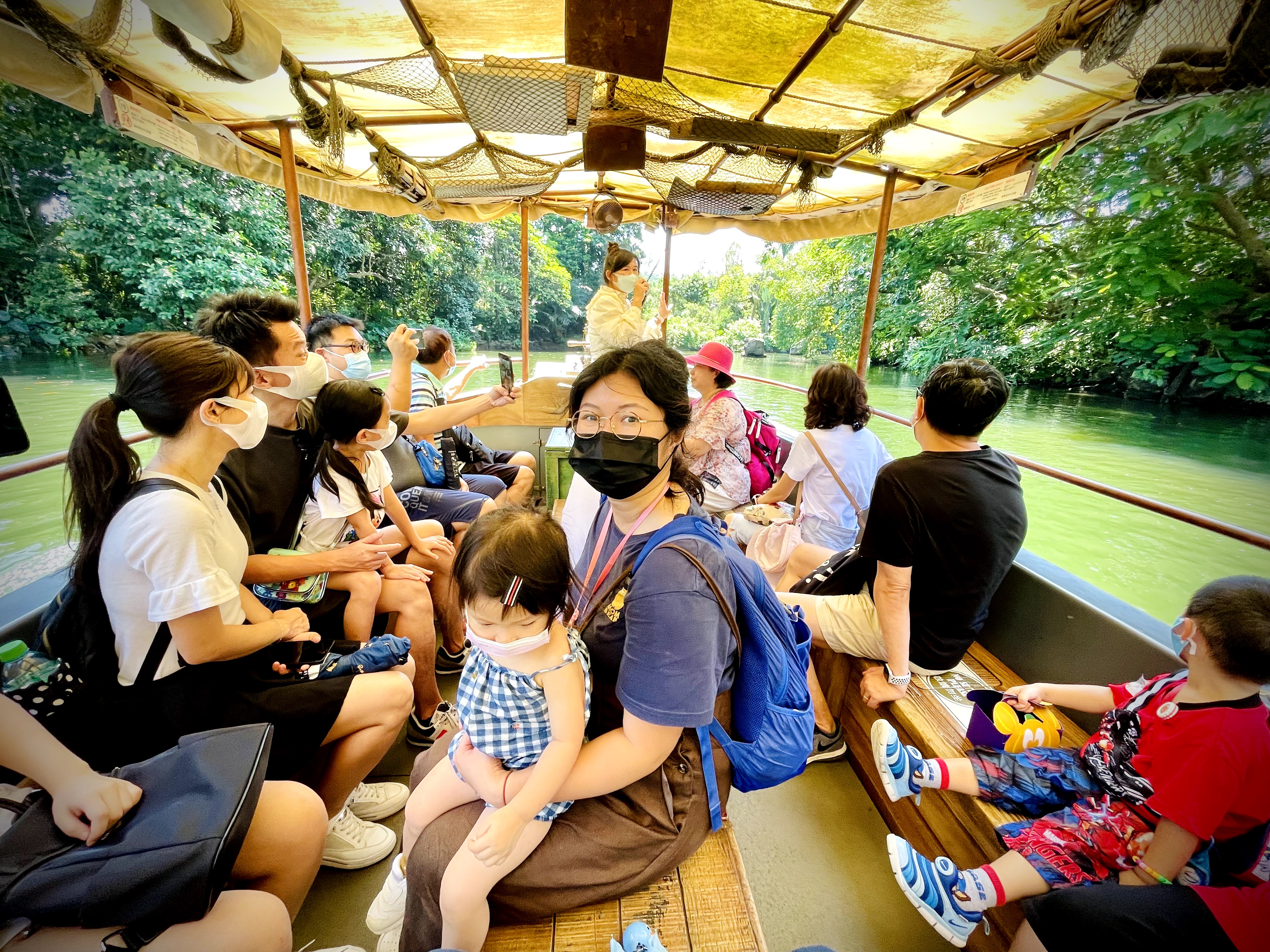 昨晚有坐船,當時已經完全天黑,所以白天再坐一次!啦啦好像沒那麼怕。昨晚她在漆黑中見到噴火的景象,加上熱力,驚慌得哭起來,我大人也認為是有一點可怕。白天經過同一個地點,便沒事了!
