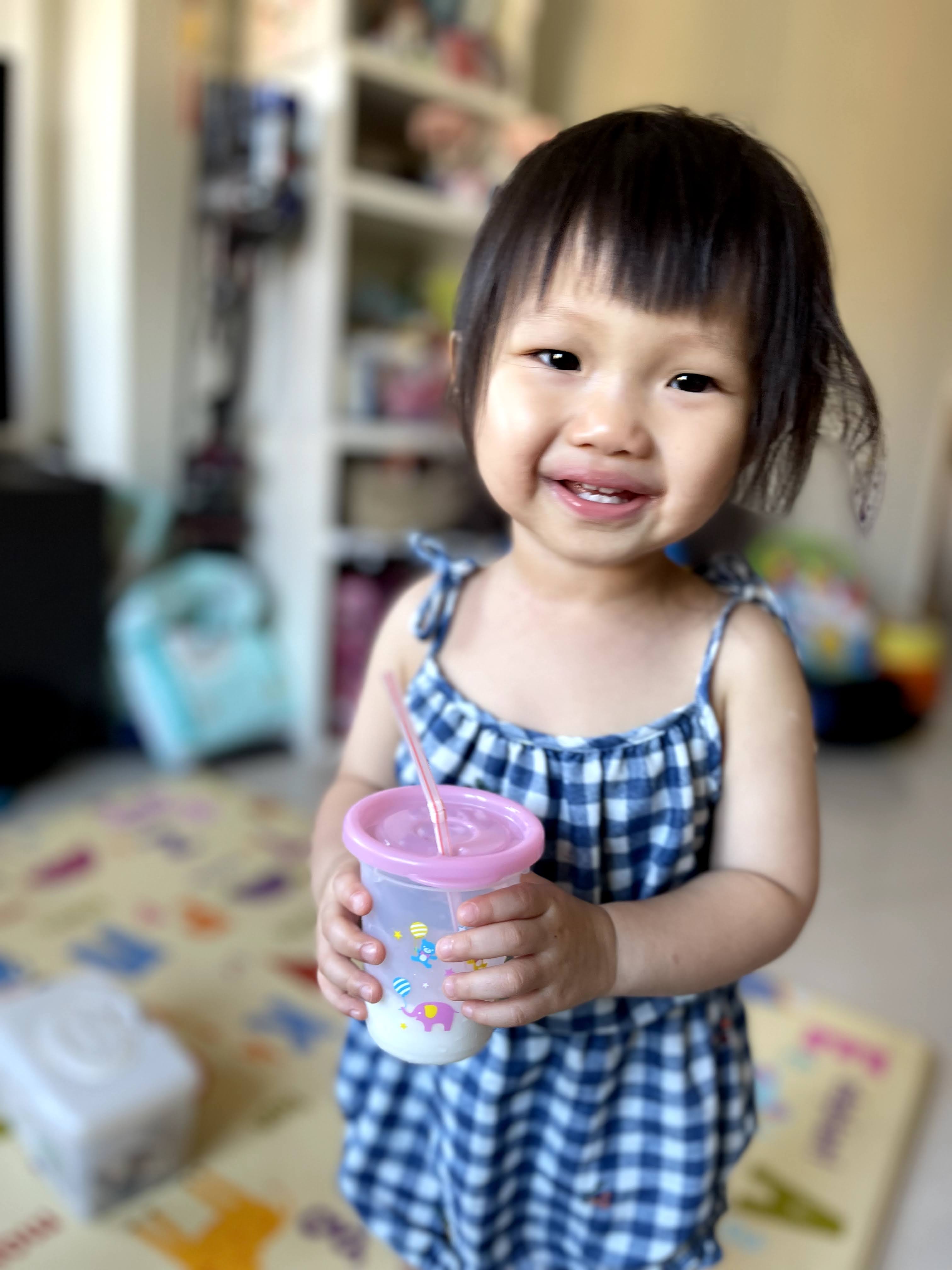 啦啦兩隻小手指篤臉,即是笑笑。她應該很滿意這兩日一夜的 Staycation 呢!