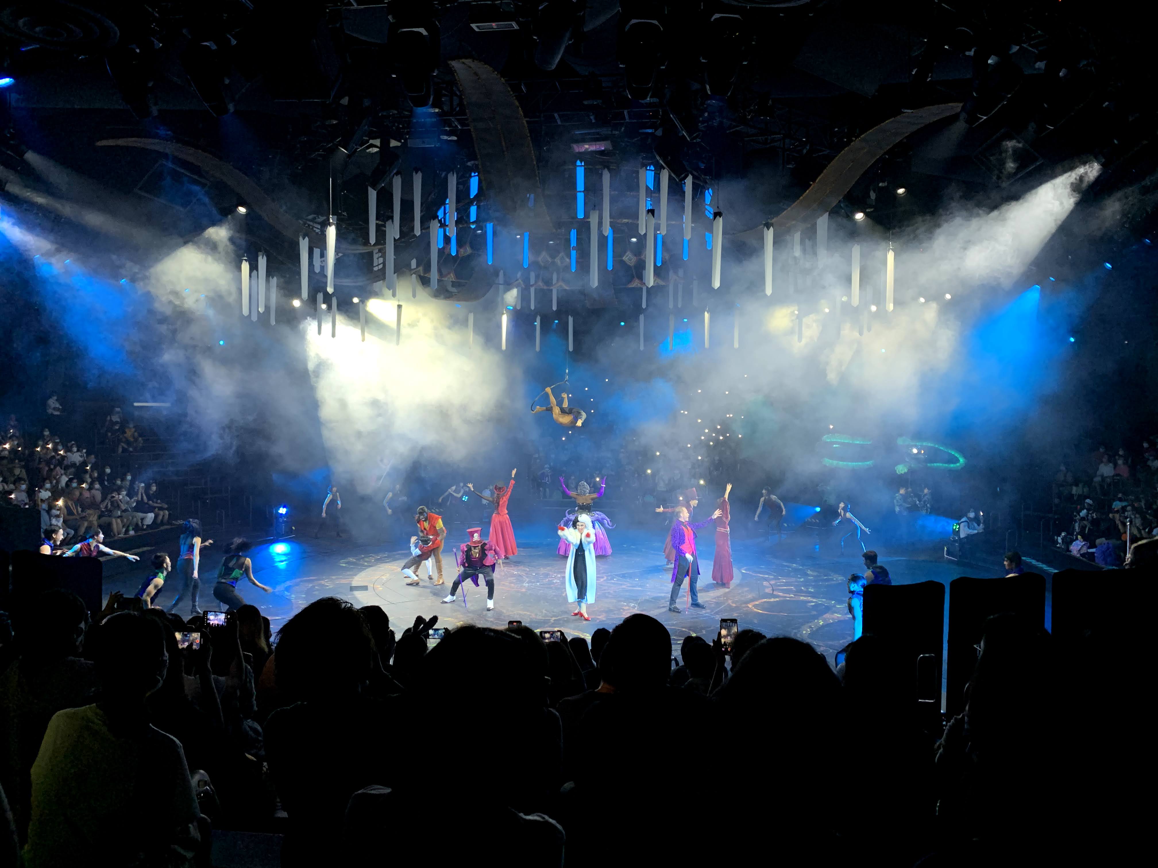 坐船後,看了萬聖節的全新演出「惡人舞動廸士尼」,上次我們來森林劇場看「獅子王慶典」,今次換成了多位廸士尼大壞蛋載歌載舞,看到動畫的經典場面現場演出,好精彩呢!啦啦也有不停拍手!