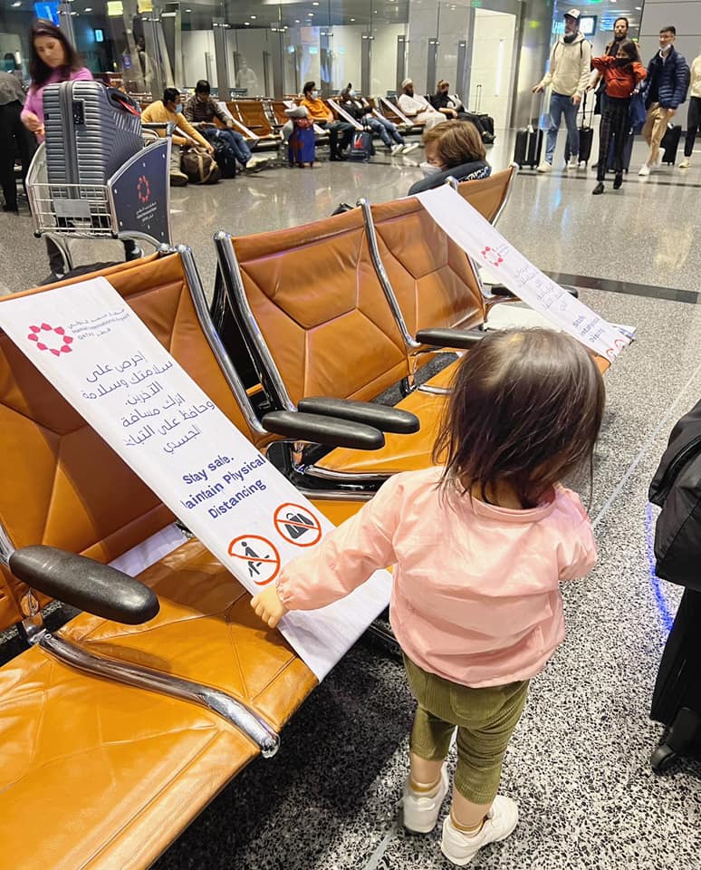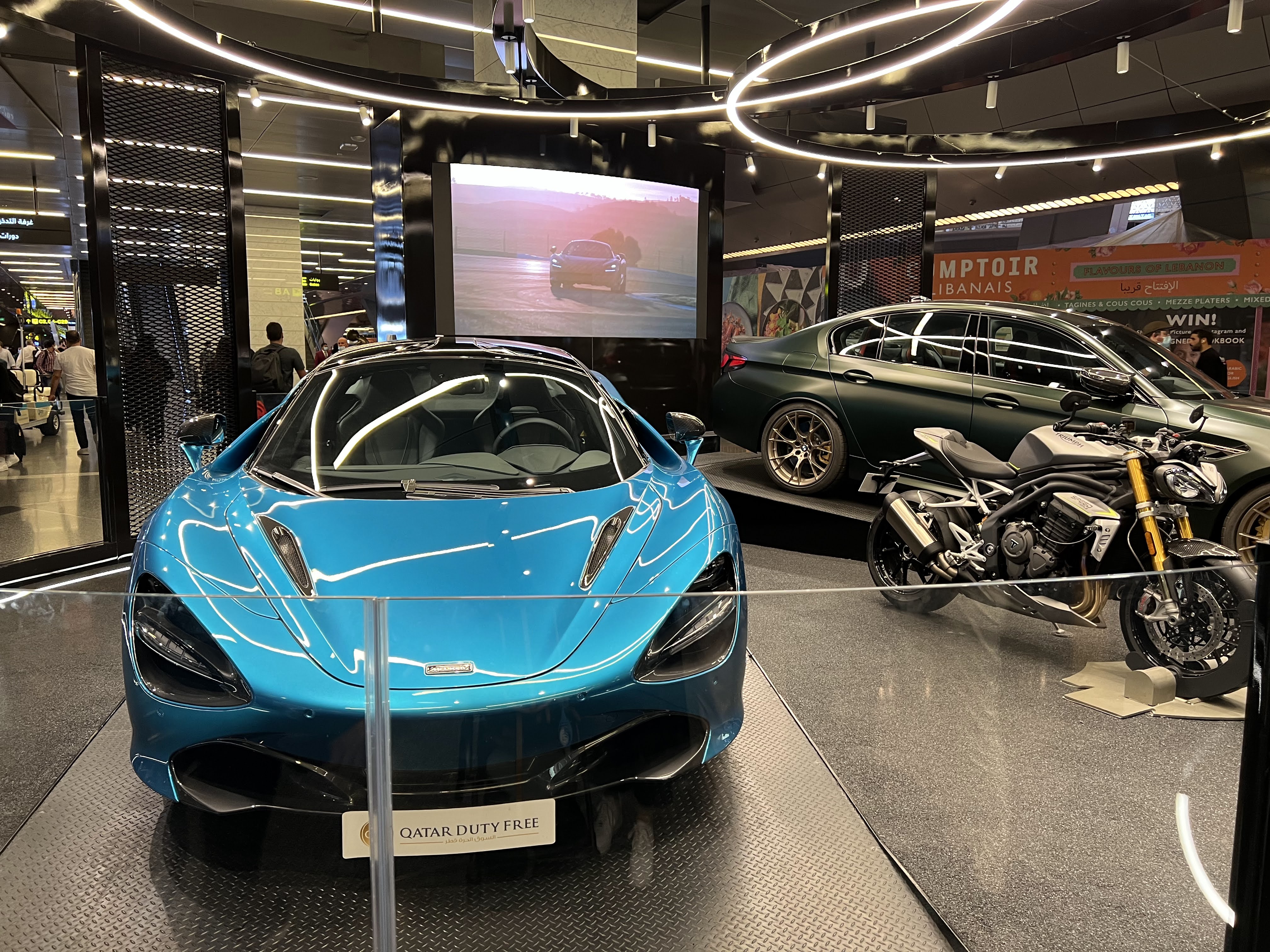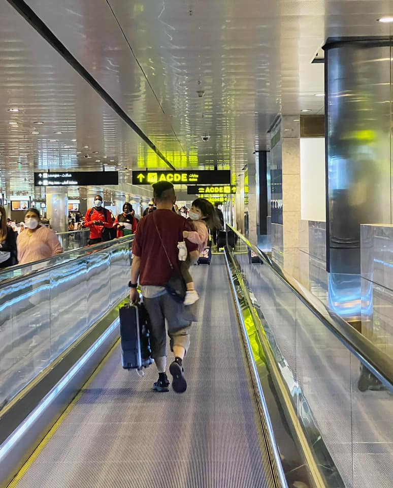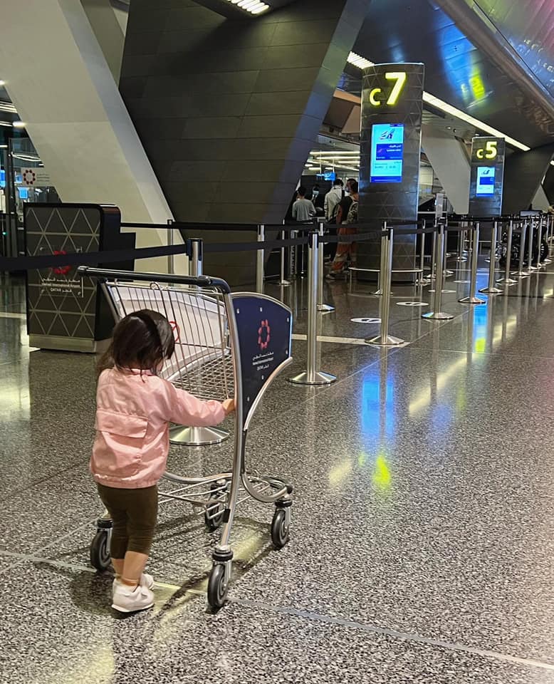 香港機場是沒甚麼人也沒甚麼店鋪開門,去到多哈機場則完全不同,有好多人,店鋪(賣金賣名車的地方),連遊樂場也有!像去了第二個世界。