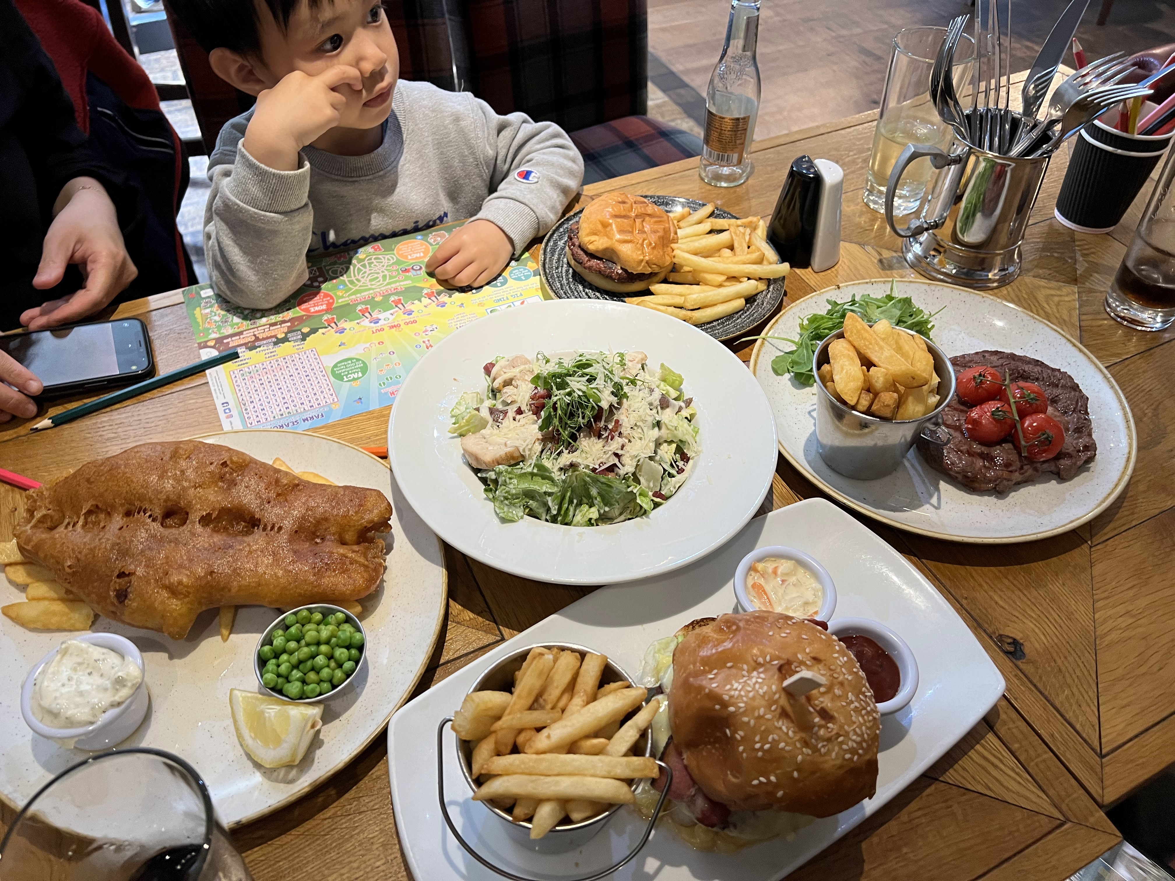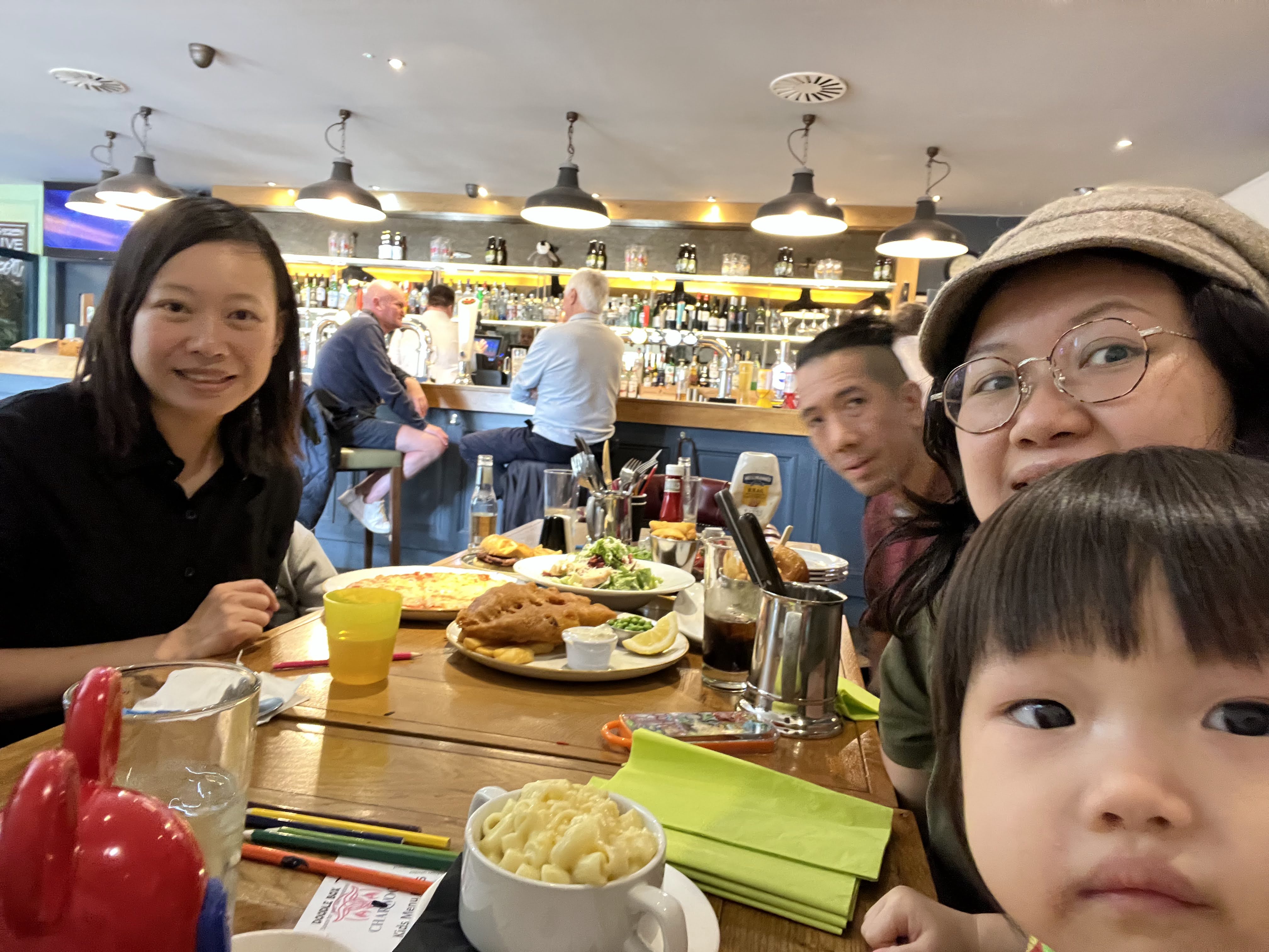移英第一餐,當然是西餐,我已經忘了餐廳名字,但是聚人都很 Friendly 和友善。我們在埋單的時候,有位男仕走過來,讚我們 Well Done 因為我們的孩子很乖,沒有亂走亂跳而且吃得很乾淨!(我當時是「吓?啦啦吃到地上也有一點食物…」)