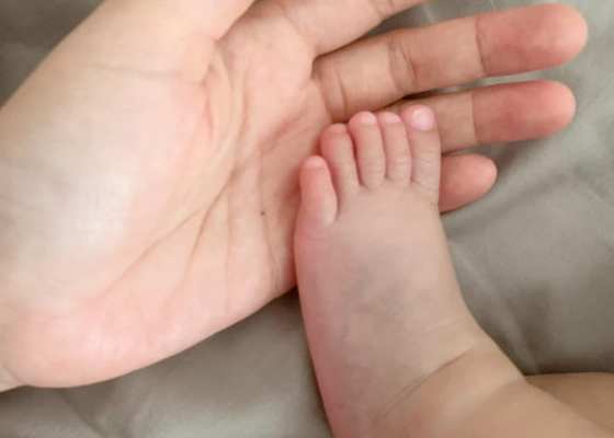 我的大手,黃啦的小腳。 Spread l